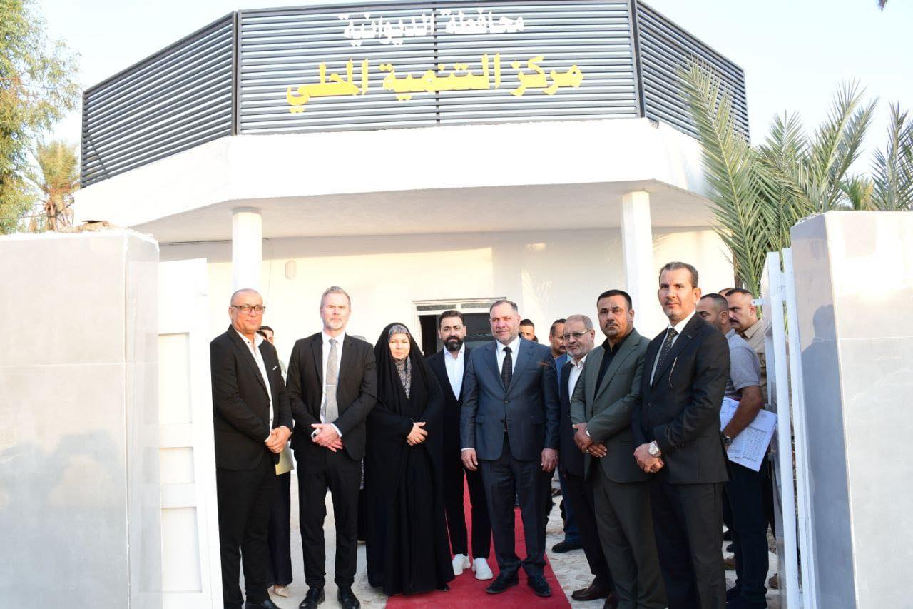 محافظ الديوانية الأستاذ “عباس شعيل الزاملي” وممثل الوكالة التنمية السويدية “سالار” يفتتحان مركز التنمية المحلي