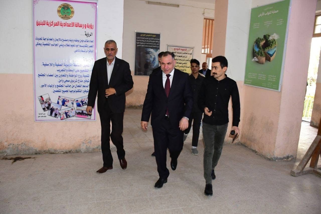 للإطلاع على سير العملية التربوية، محافظ الديوانية الأستاذ “عباس شعيل الزاملي” يزور الإعدادية المركزية للبنين