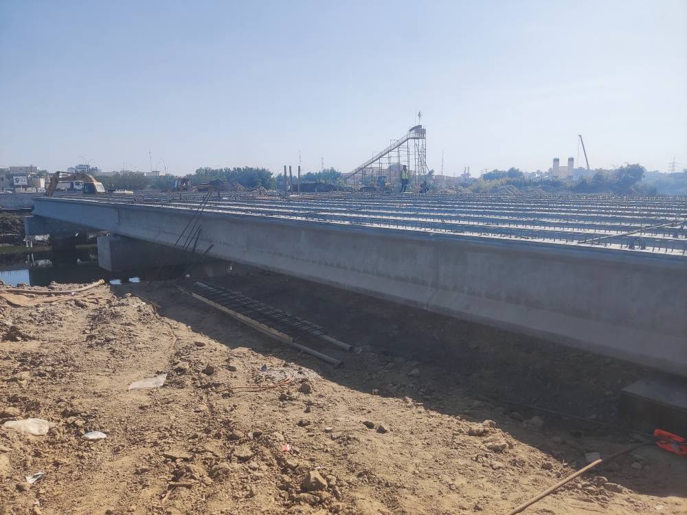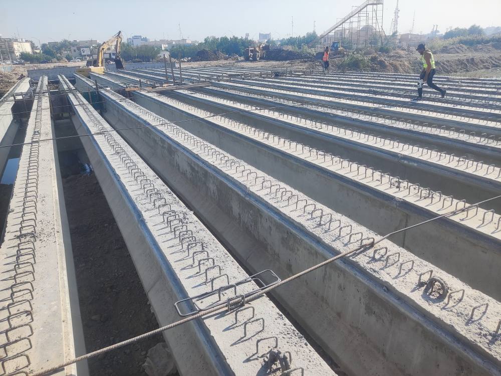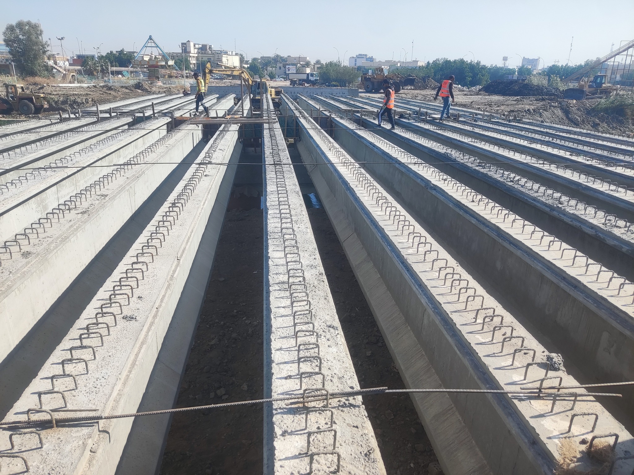 تقدم مراحل العمل في مشروع إنشاء جسر الشهيد محمد محمد صادق الصدر (قدس) بمركز المحافظة، تزامنًا مع أعمال نصب الروافد الكونكريتية للجسر.