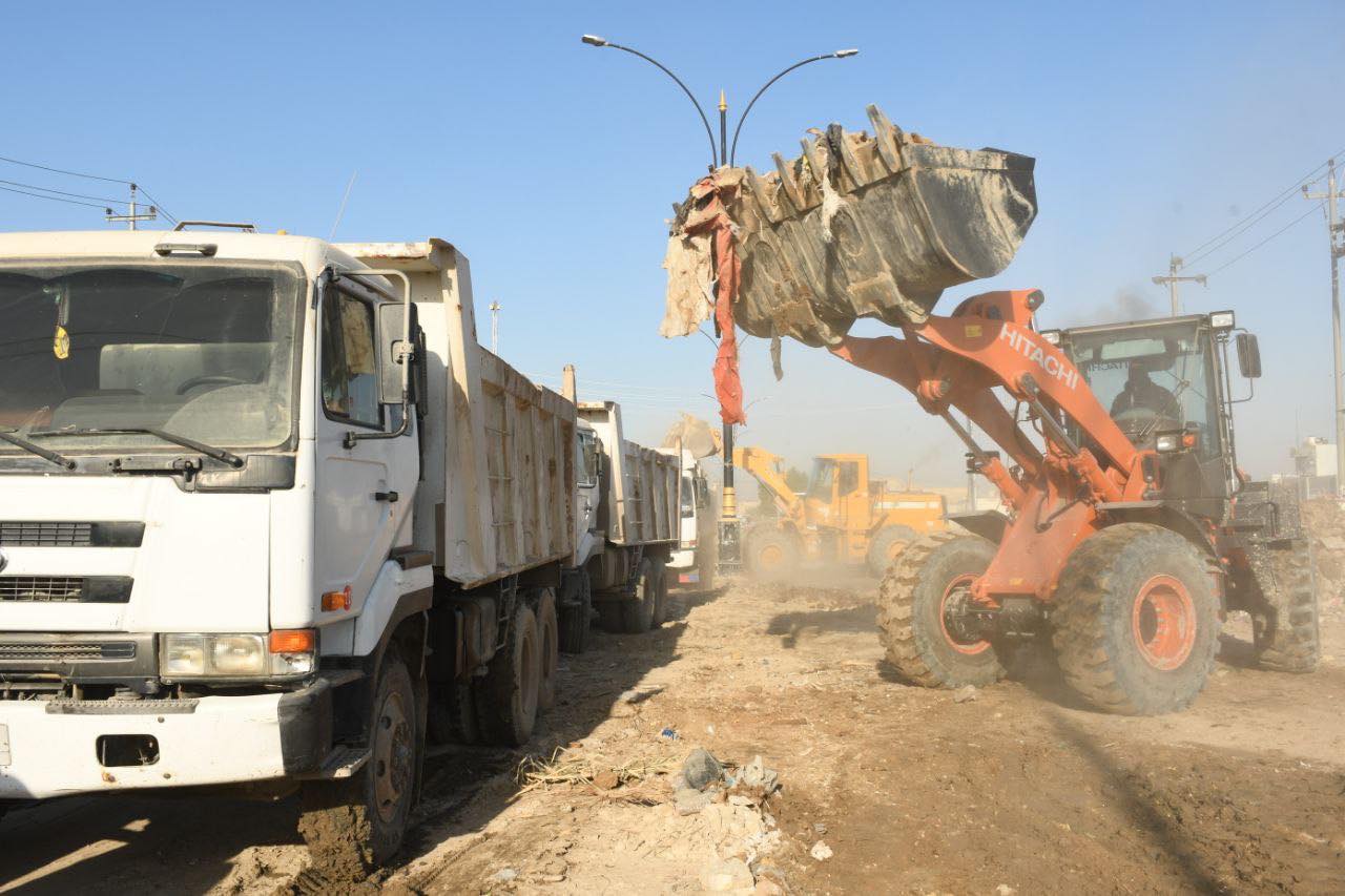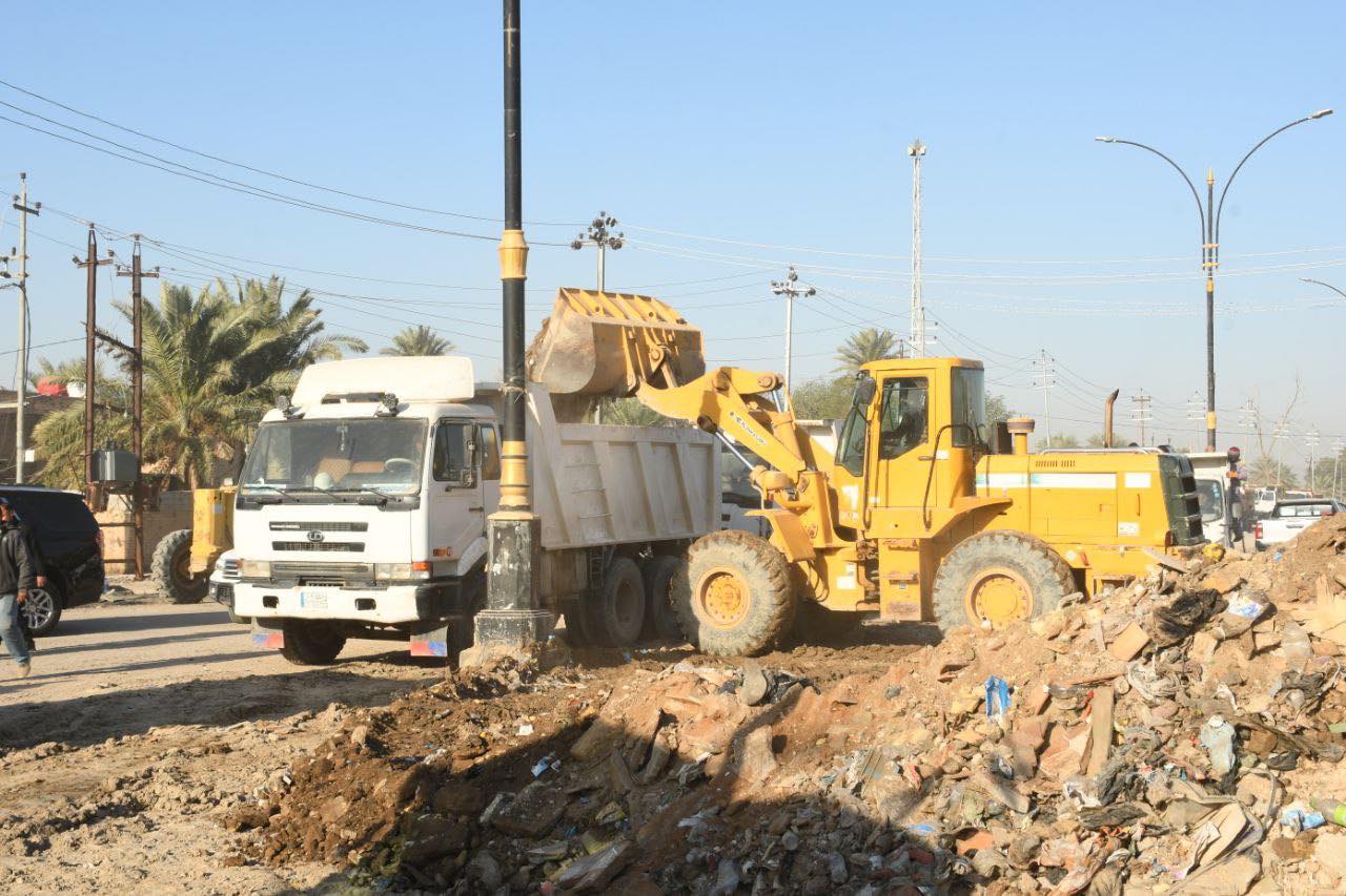 بآليات الجهد الثقيل، محافظ الديوانية يتابع الحملة الخدمية التي تنفذها مديرية البلدية لرفع الأنقاض خلف جدار إعدادية الزراعة، في إطار تحسين الواقع البيئي