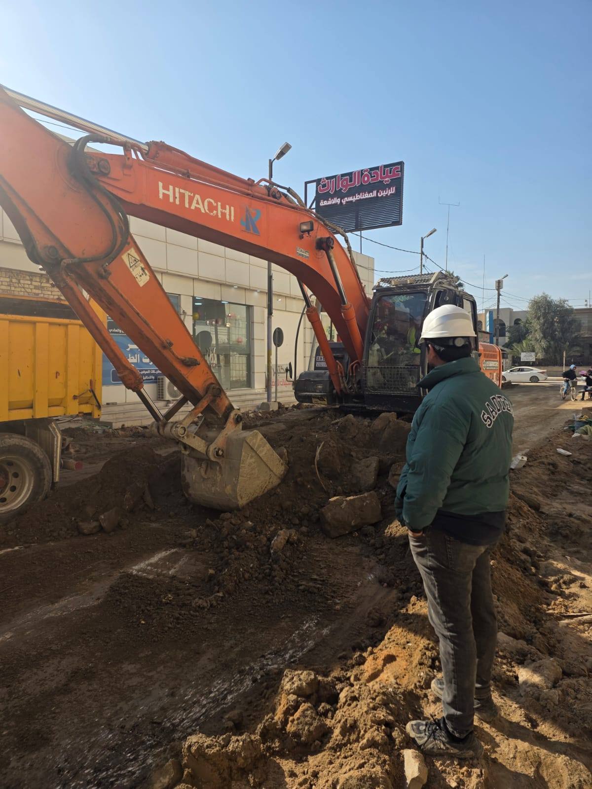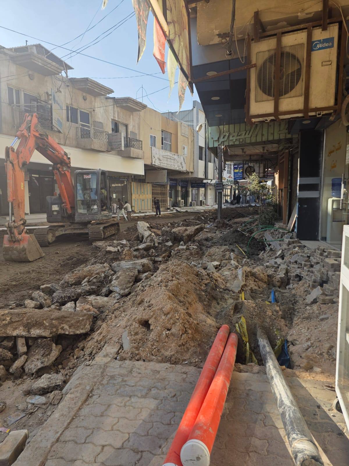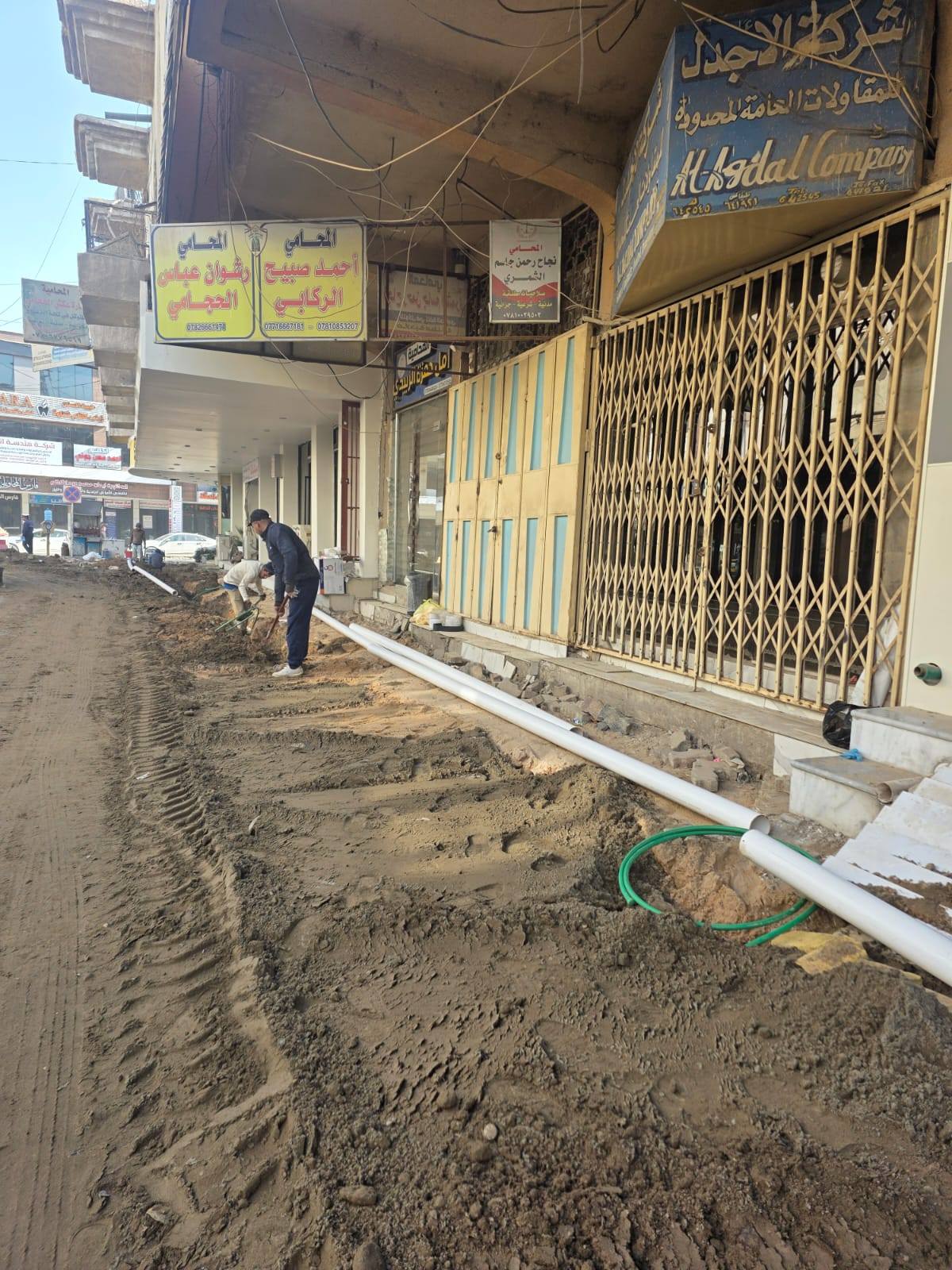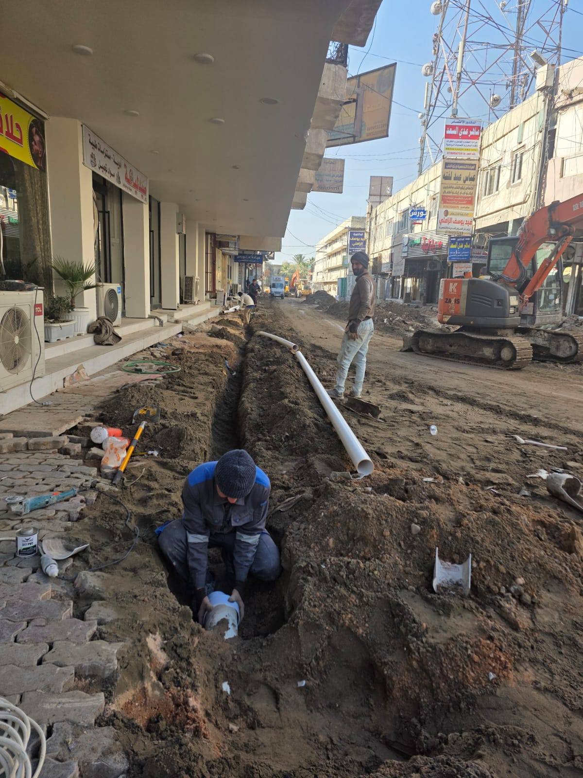 ضمن مشاريع تأهيل 30 حيًا، تواصل الأعمال في مد أنابيب (الماء، الإتصالات) خلف دائرة بريد الديوانية في منطقة صوب الشامية.