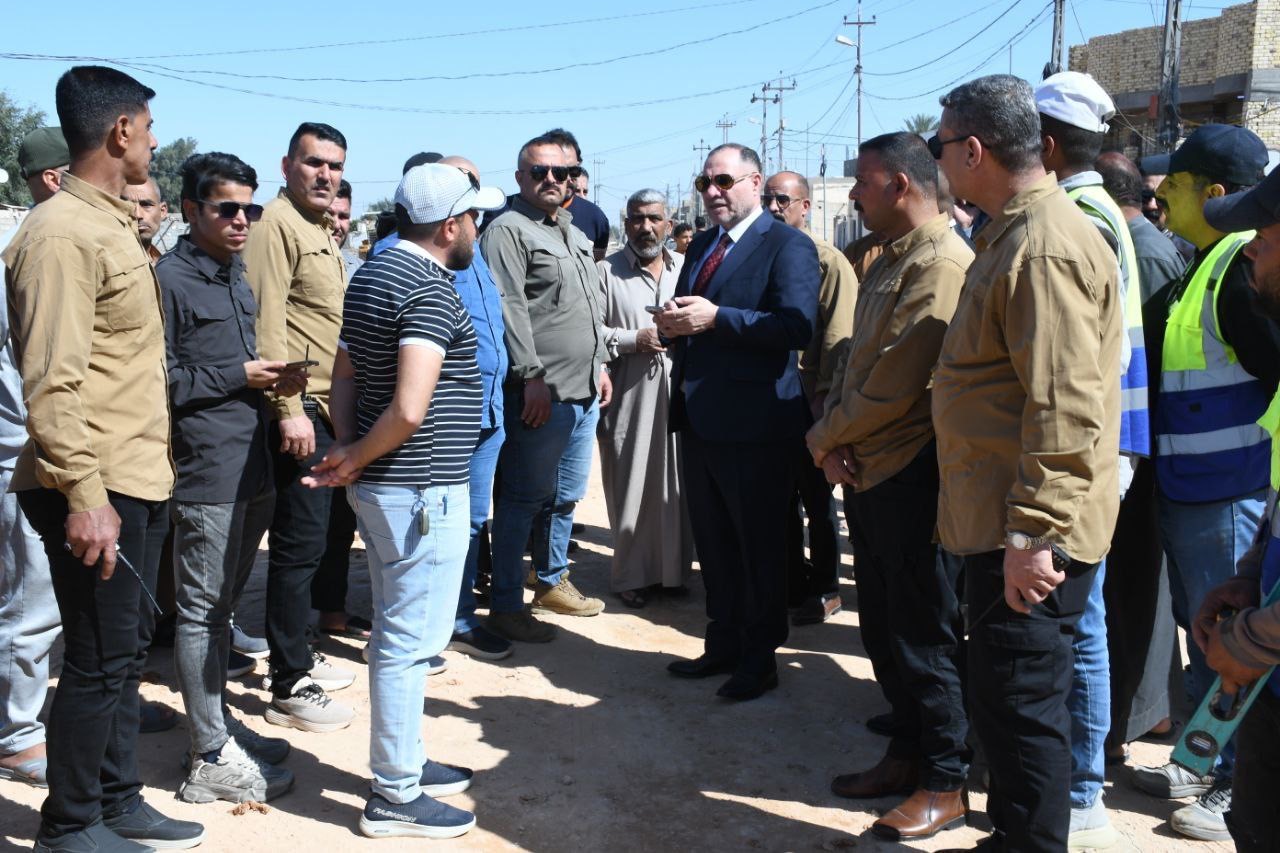 تمهيدًا لأعمال الصب، محافظ الديوانية يطلع على أعمال فرش الحصى في منطقة حي الصدر الرابع