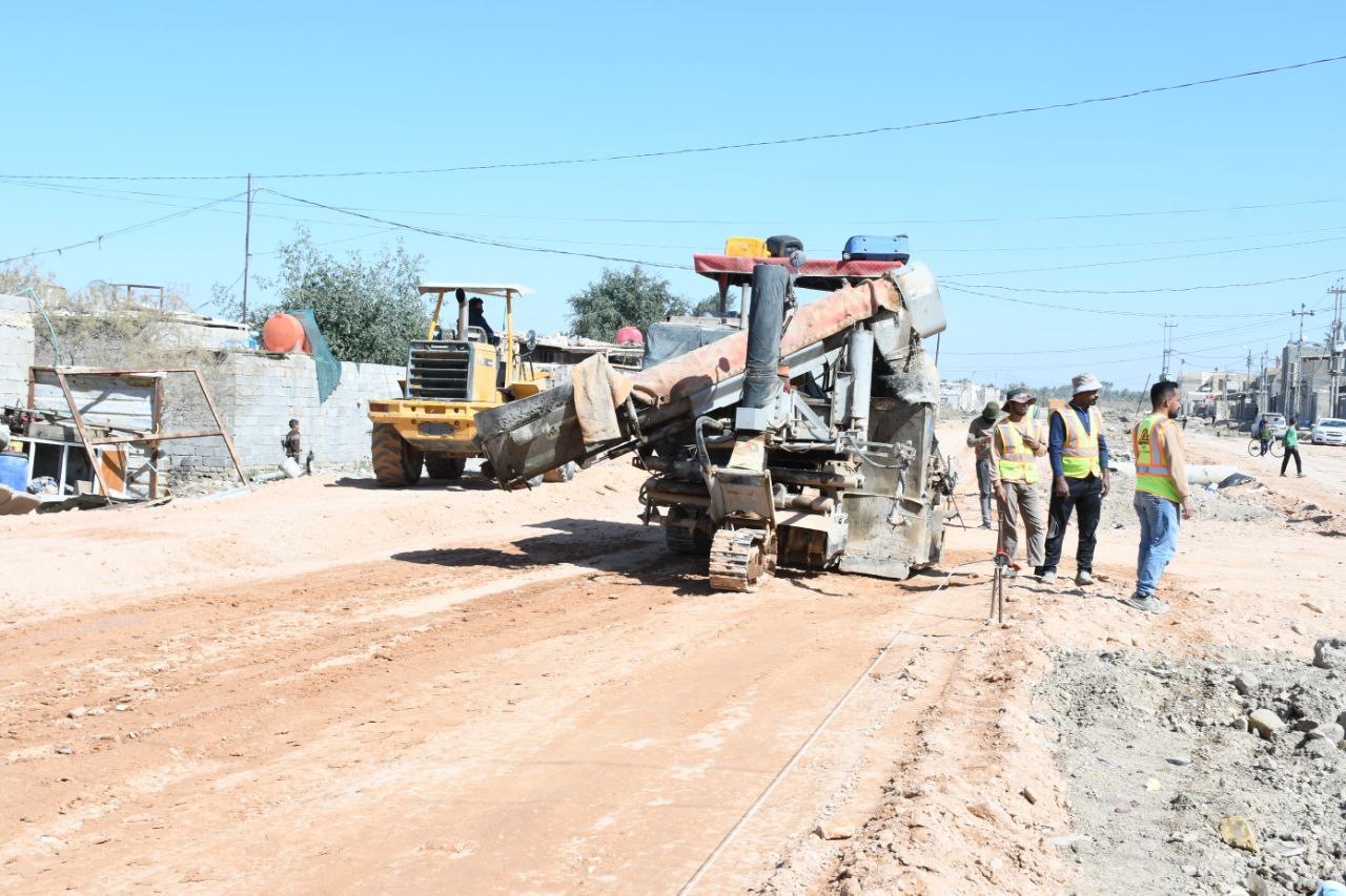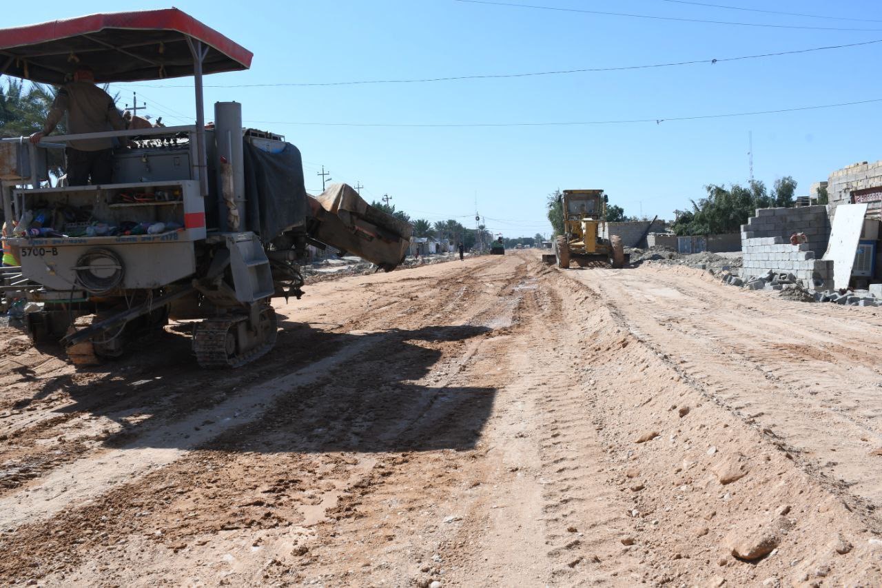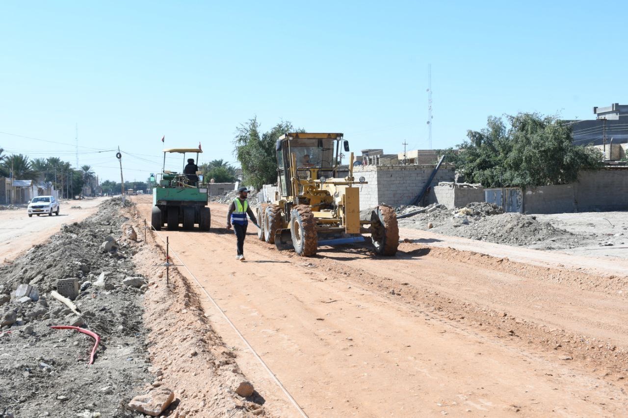 محافظ الديوانية يطلع على أعمال فرش الحصى الخابط (السبيس) في شارع (سبعة) قرب فلكة نجاح في منطقة حي الصدر الرابع.