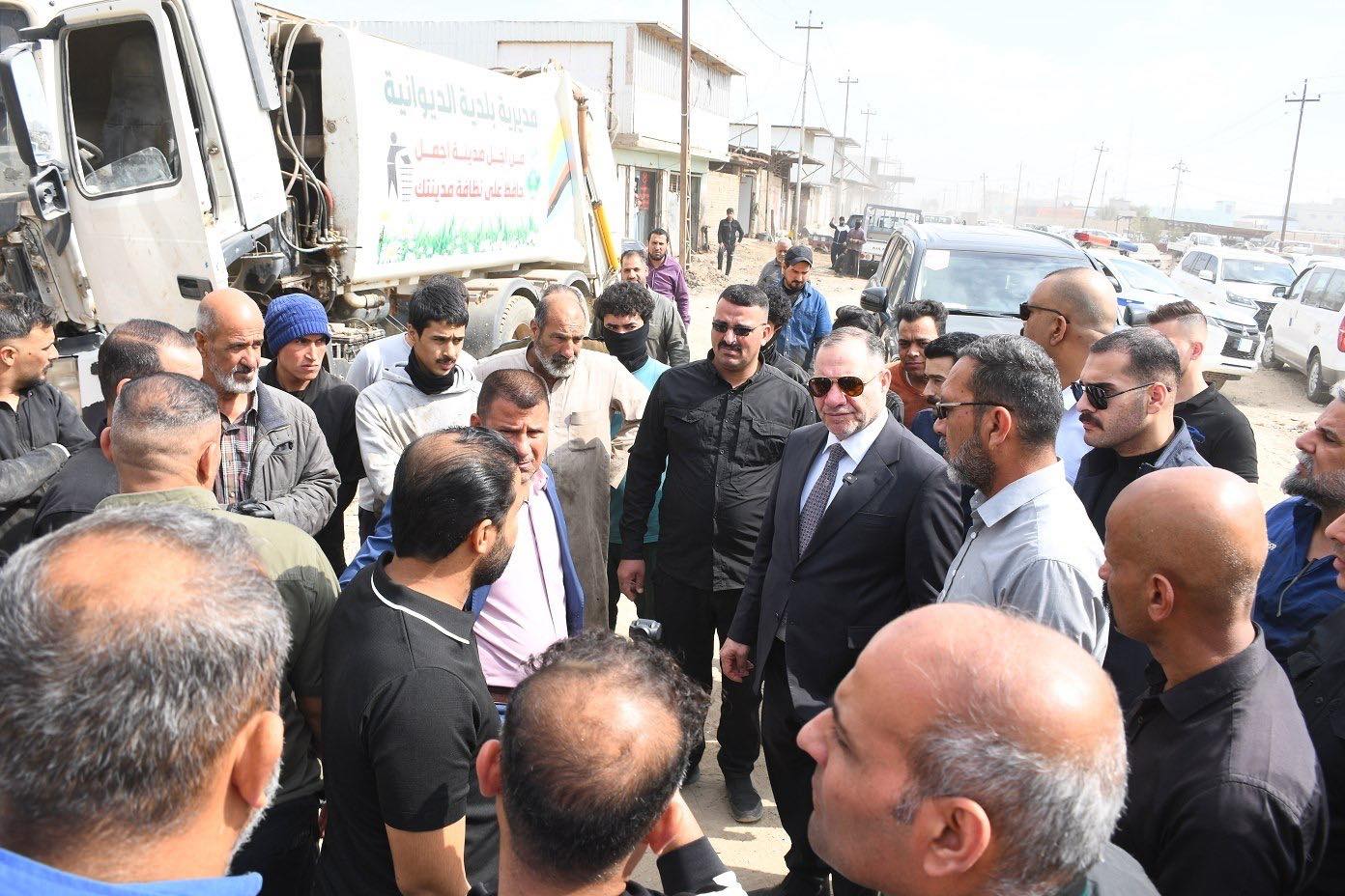 توجيهات بإزالة التجاوزات، محافظ الديوانية يجري جولة ميدانية في منطقة الحي الصناعي للإطلاع على أعمال التأهيل، ويوجه مديرية البلدية بالتعاون والتنسيق مع الشركة المنفذة