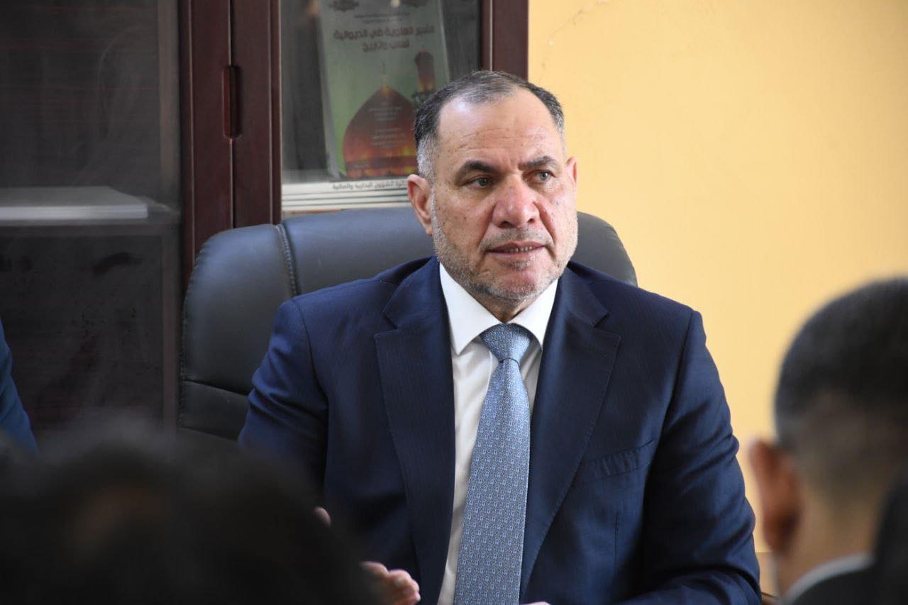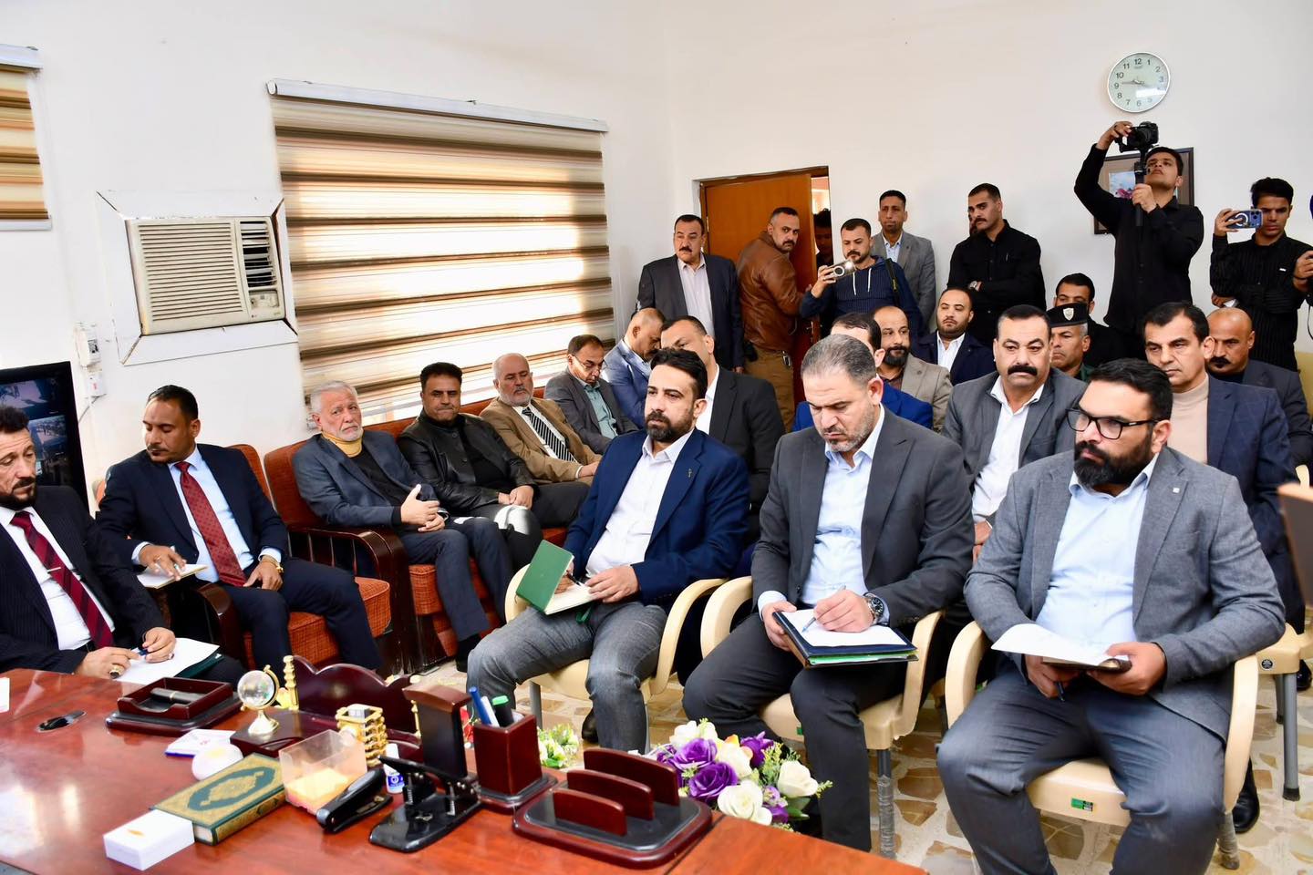 محافظ الديوانية يعقد اجتماعا مع رؤساء الوحدات الإدارية لمناقشة آليات توزيع المياه على مشروعي الحرية- دغارة ونهر البسروگية وإيصال المياه بشكل عادل ومنتظم إلى الأقضية والنواحي المستفيدة