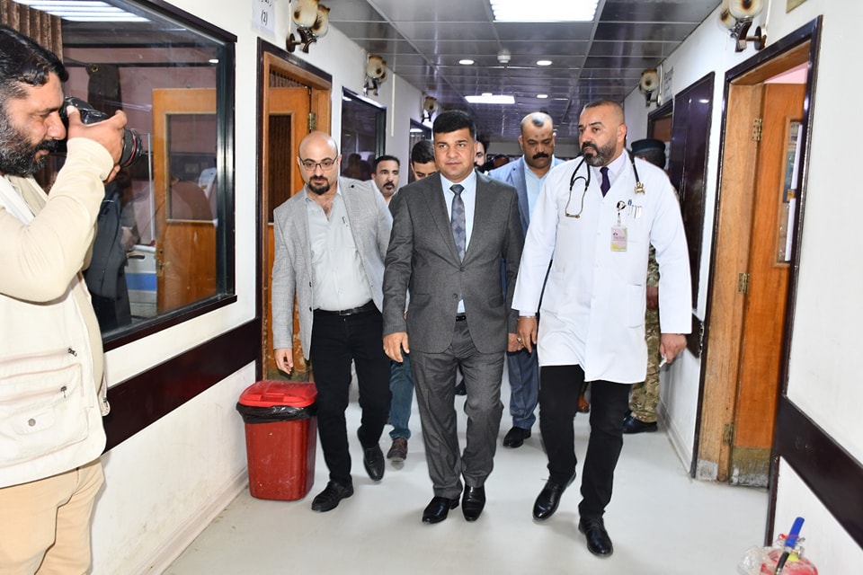 محافظ الديوانية المهندس ميثم عبد الإله الشهد يتفقد مستشفى الديوانية التعليمي للاطلاع على الخدمات الطبية والصحية والعلاجية للراقدين والمرضى