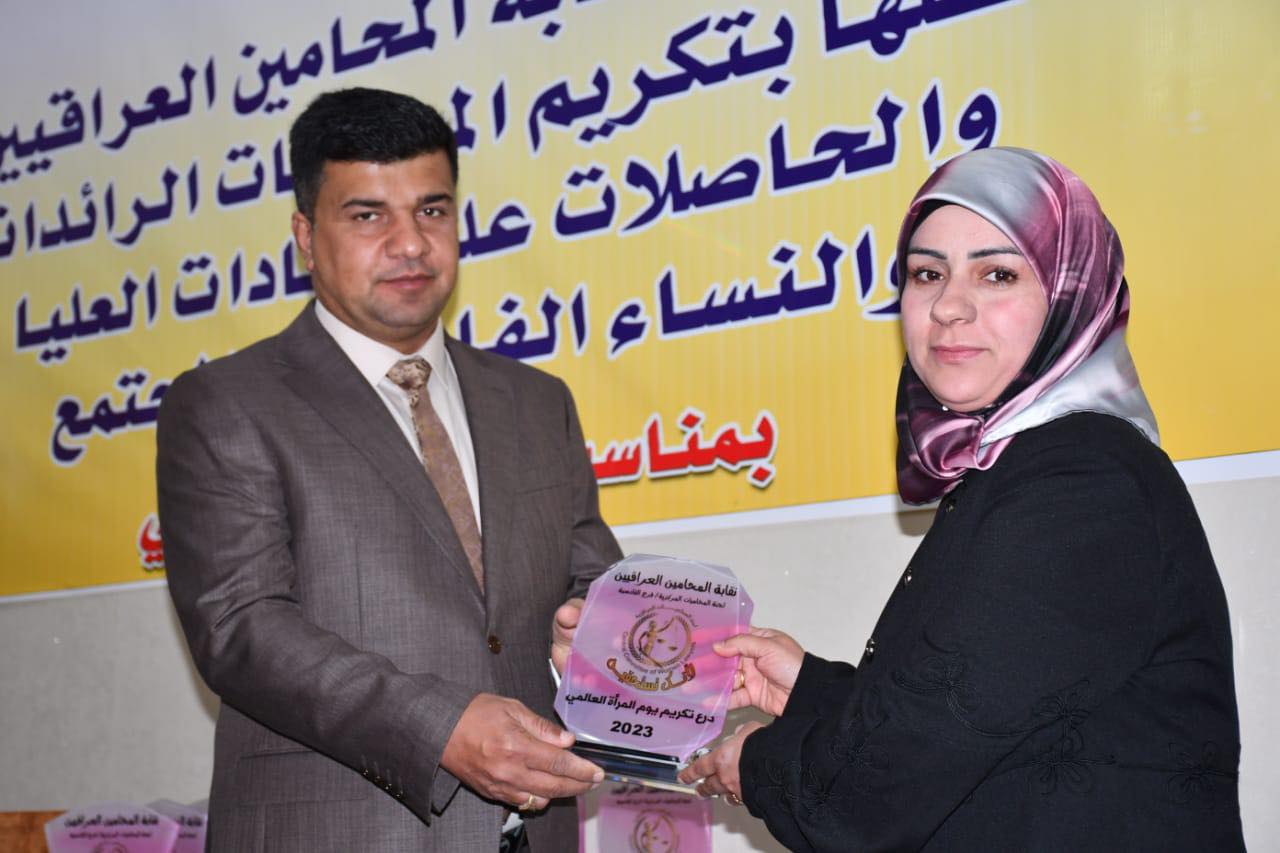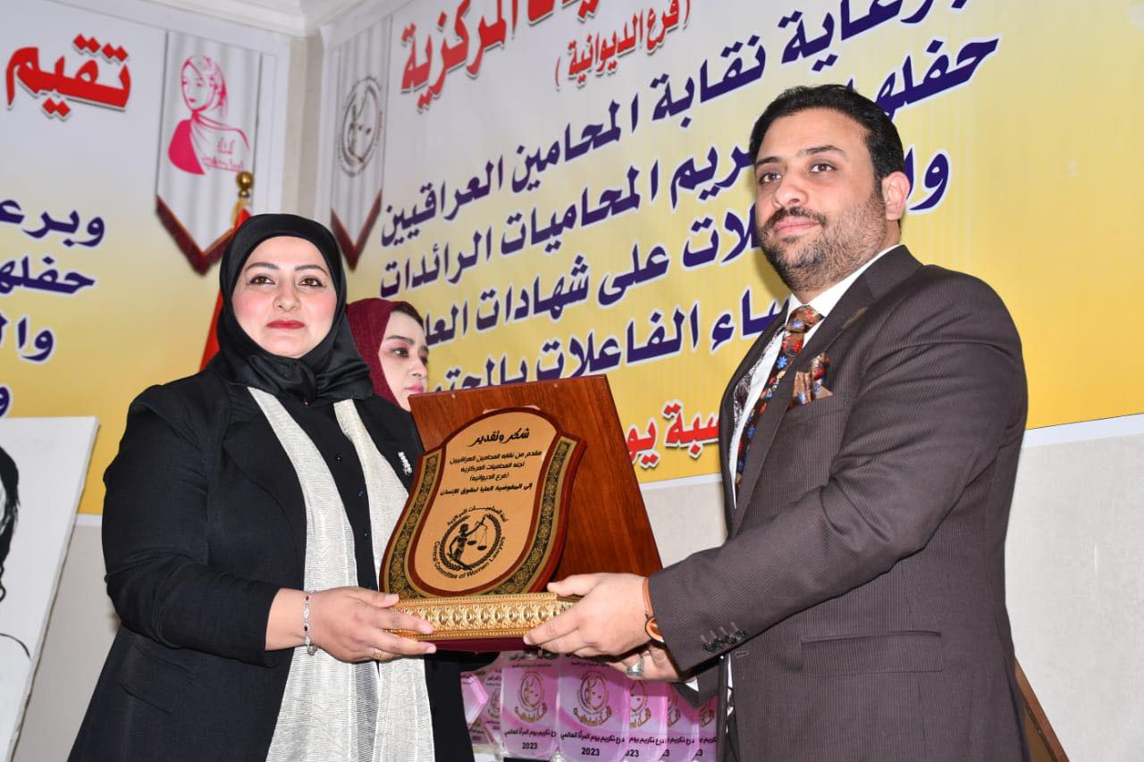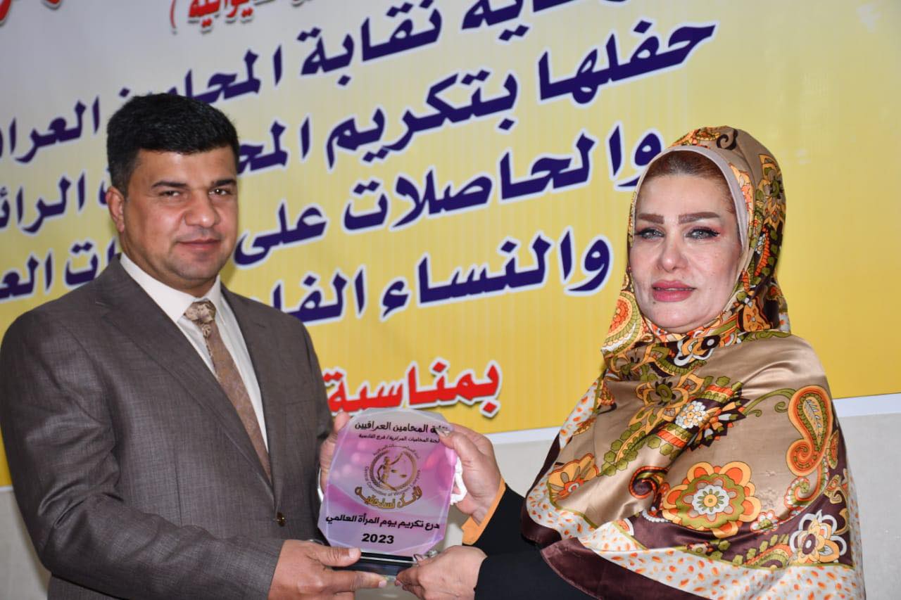 بحضور محافظ الديوانية المهندس ميثم عبد الإله الشهد : نقابة المحامين تكرم عدد من المحاميات بمناسبة يوم المرآة العالمي