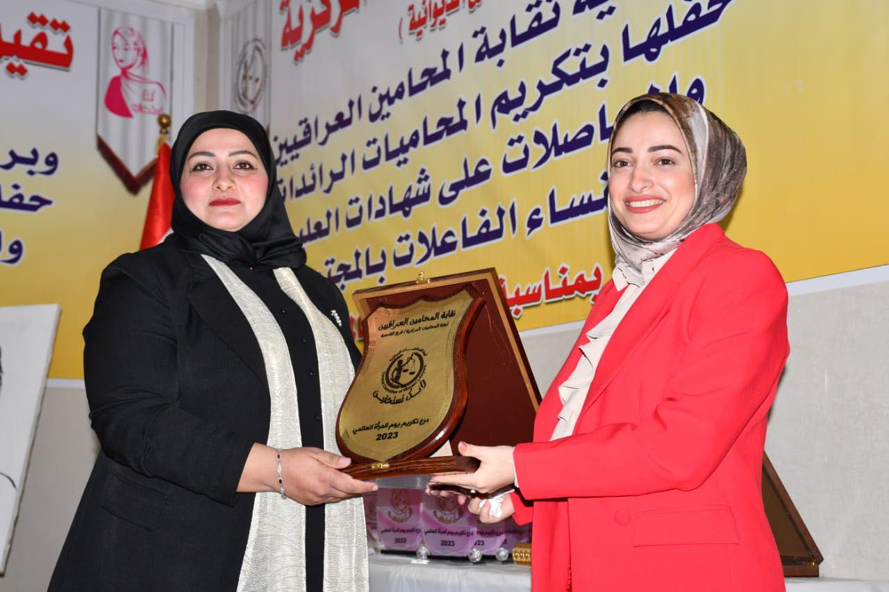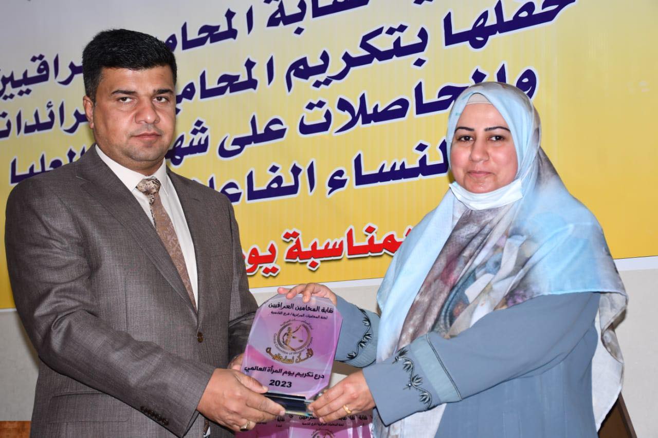 وثمن الشهد، الدور المهم الذي تقوم به المحامية في تعزيز العملية القضائية واحترام القوانين، فضلا عن مساهمتها الكبيرة في المجتمع المدني وتطويره”.