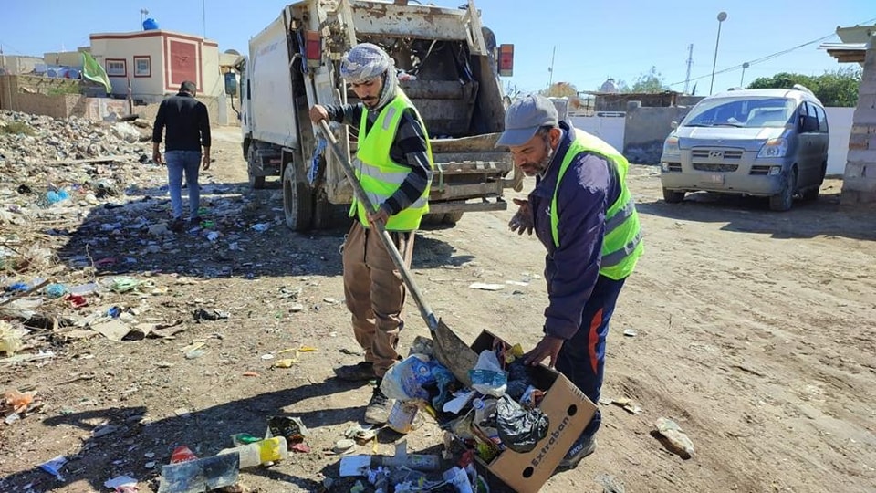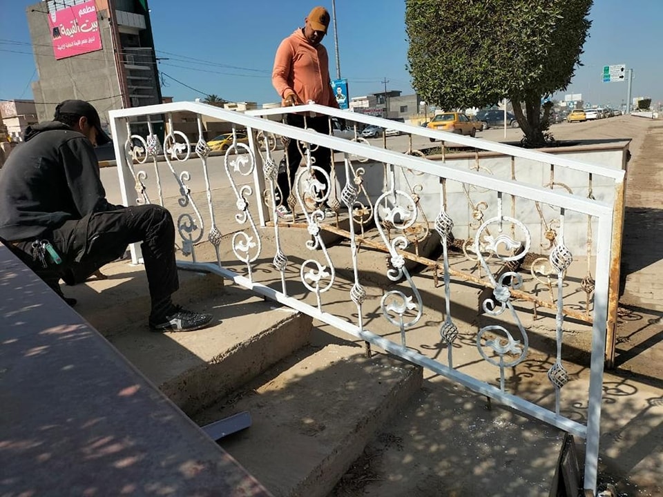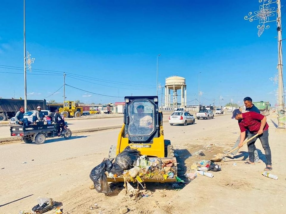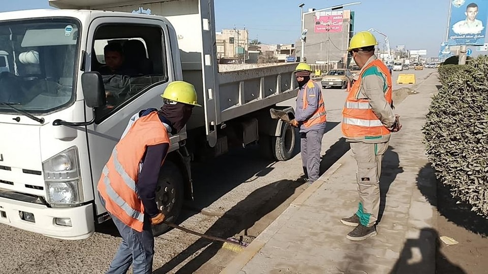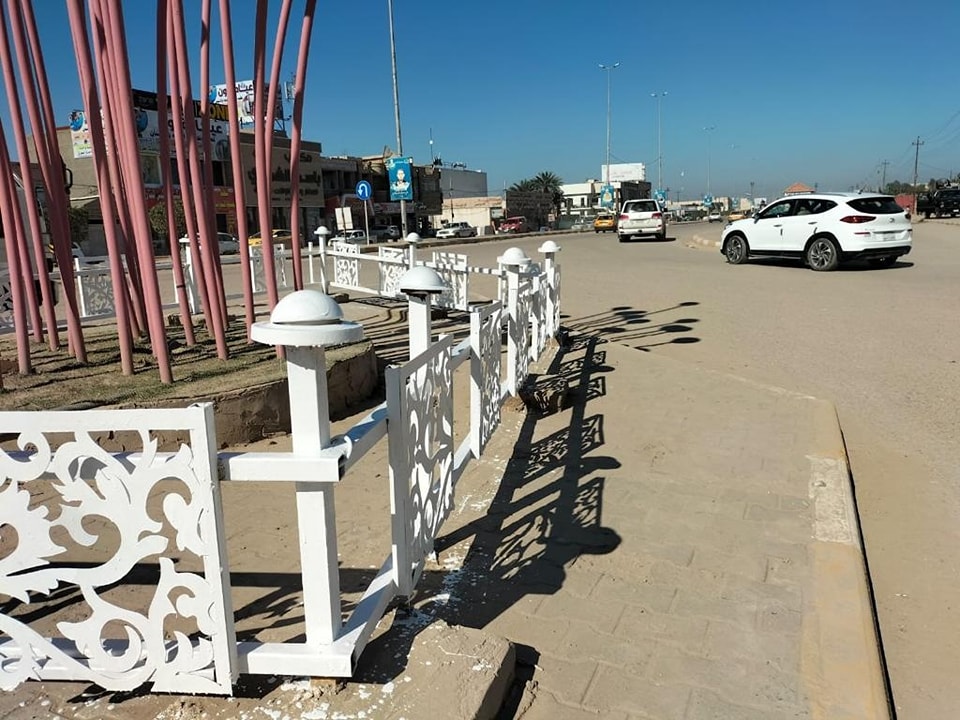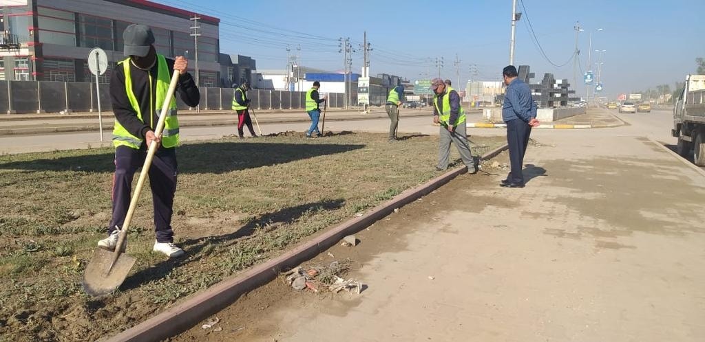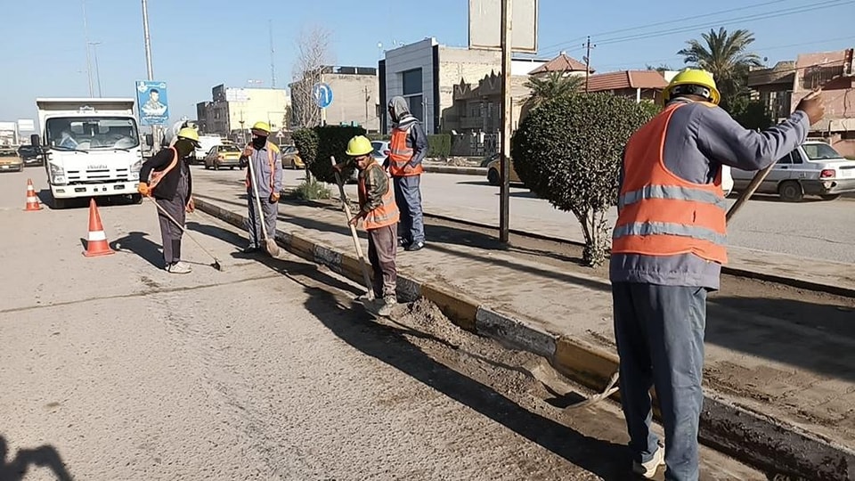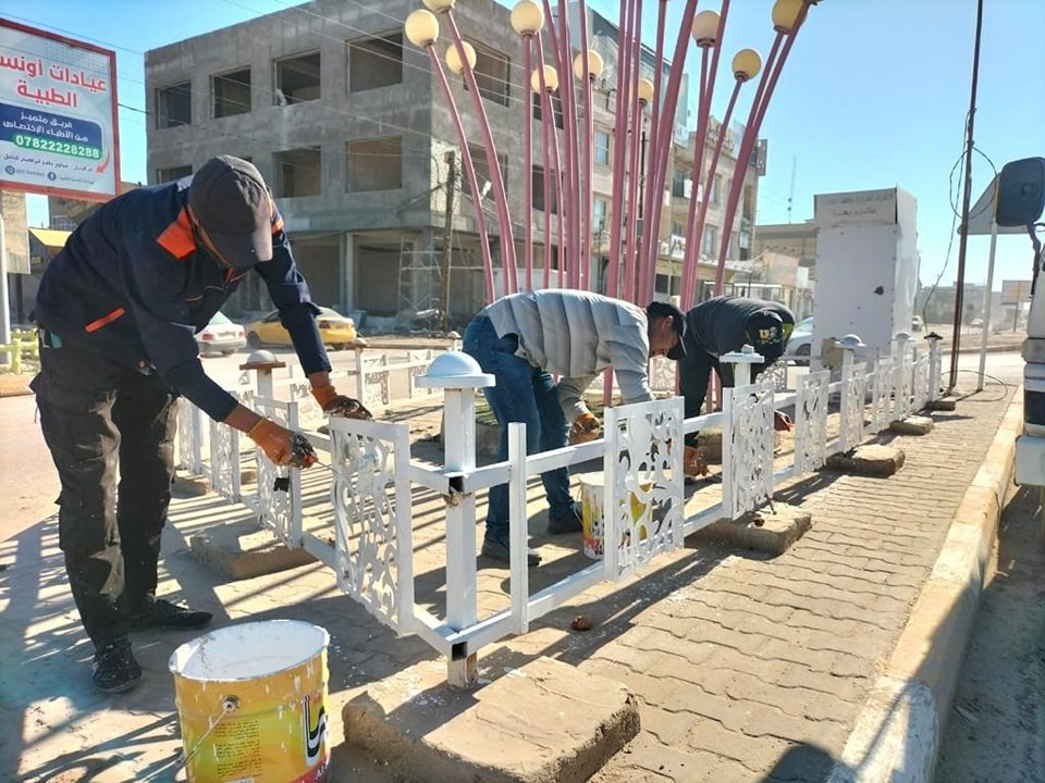 جانب من أعمال الملاكات الفنية والهندسية في مديرية بلدية الديوانية لتاهيل وتعديل الجزرات الوسطية وفرشها بالاشجار والورود الطبيعية ، بالإضافة إلى رفع الاطيان والنفايات من شوارع متفرقة بمركز المحافظة