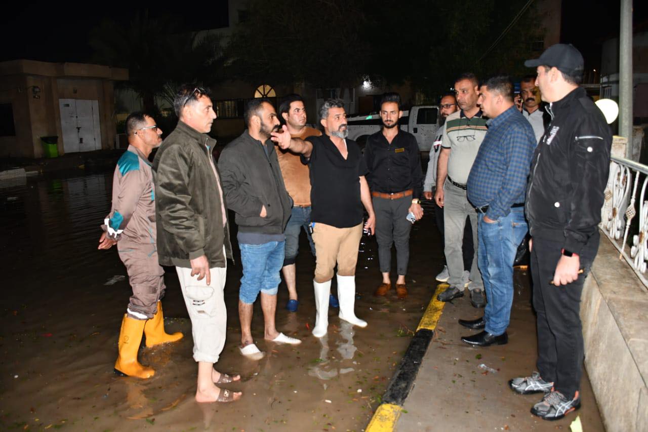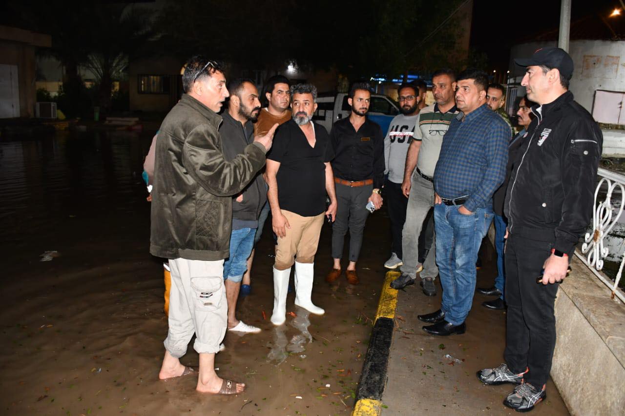 محافظ الديوانية المهندس ميثم عبد الإله الشهد يواصل إشرافه الميداني على عمليات تصريف مياه الامطار