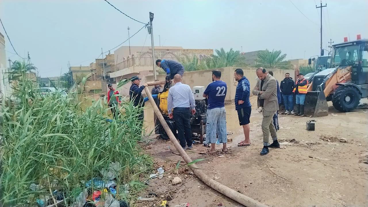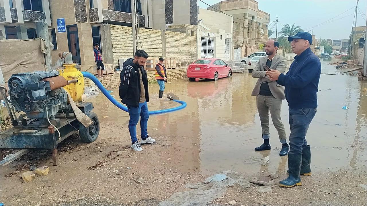 من مناطق الجزائر والمعلمين … تواصل أعمال غرفة العمليات لسحب مياه الأمطار في أحياء مدينة الديوانية