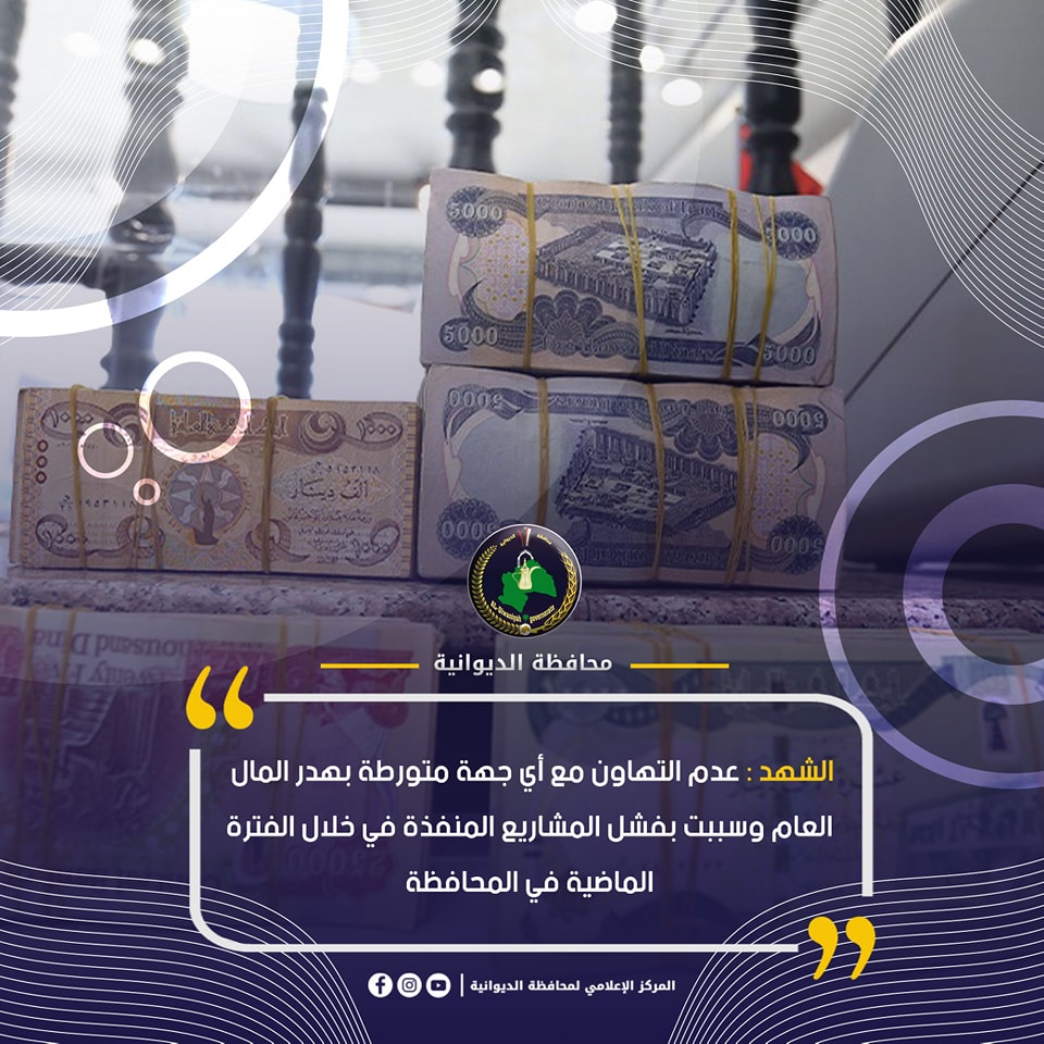 الشهد اكد، على “عدم التهاون مع أي جهة متورطة بهدر المال العام وسببت بفشل المشاريع المنفذة في خلال الفترة الماضية في المحافظة”.