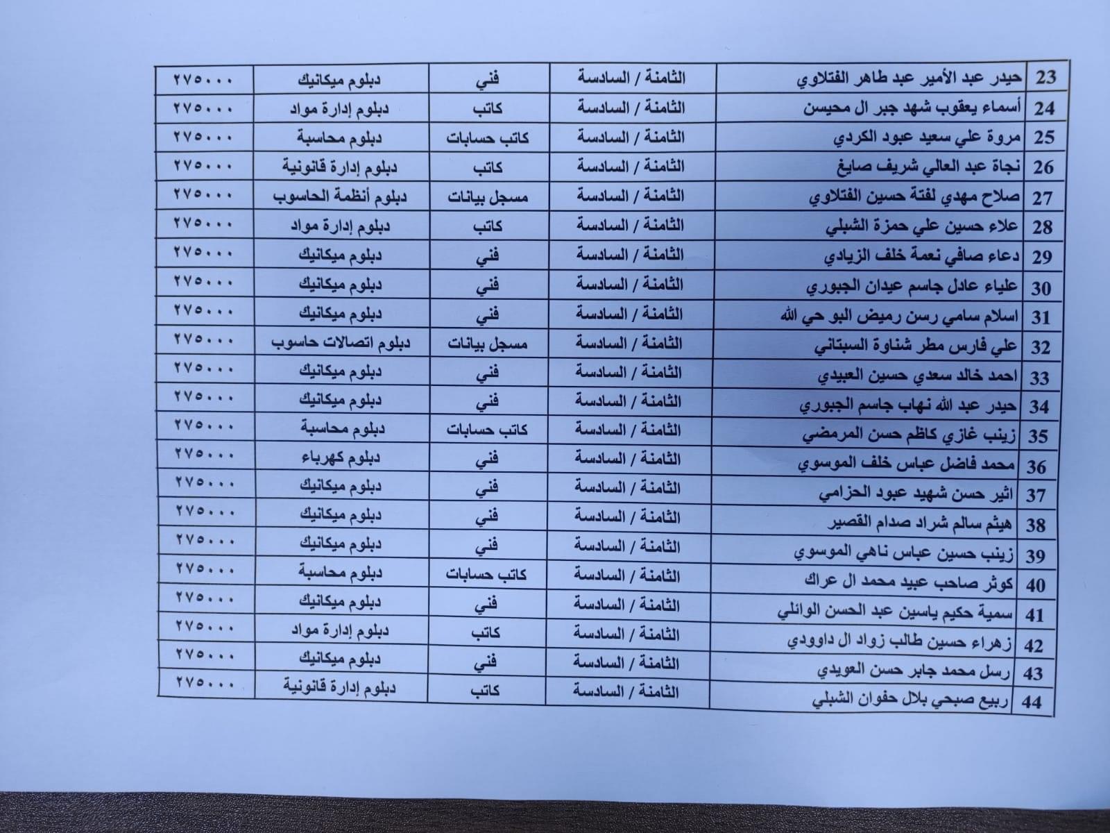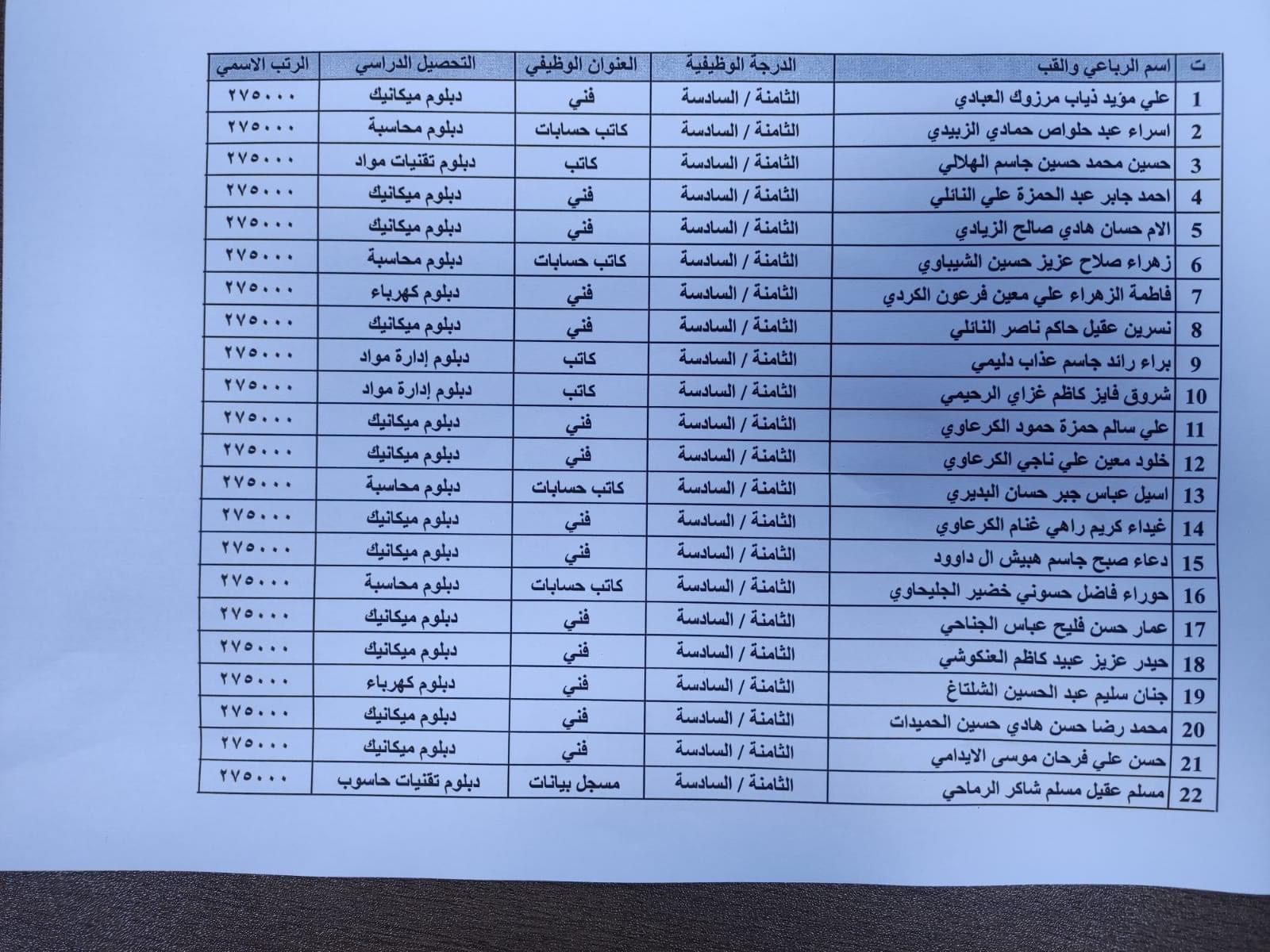 محافظ الديوانية المهندس “ميثم عبد الاله الشهد” يصادق على تعيين السادة المدرجة اسمائهم ادناه على الملاك الدائم في ديوان المحافظة
