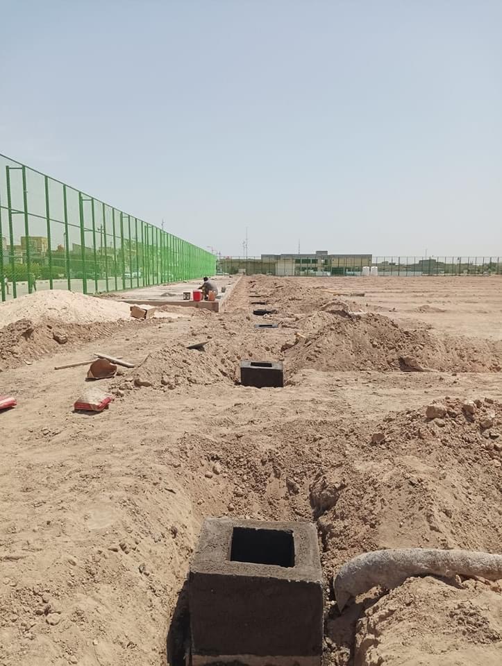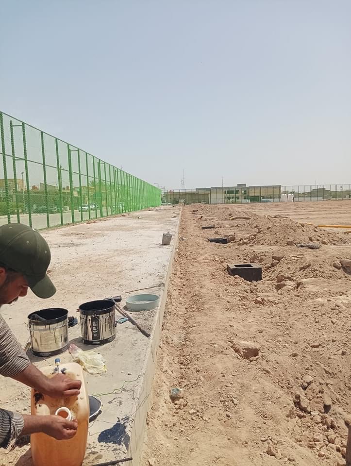 بنسبة انجاز بلغت 77% : تواصل الاعمال في مشروع انشاء ملعب السدير المنفذ من قبل شركة الاكناف للتجارة والمقاولات العامة, ضمن مشاريع تنمية الاقاليم مناقصة رقم 10 لسنة 2021