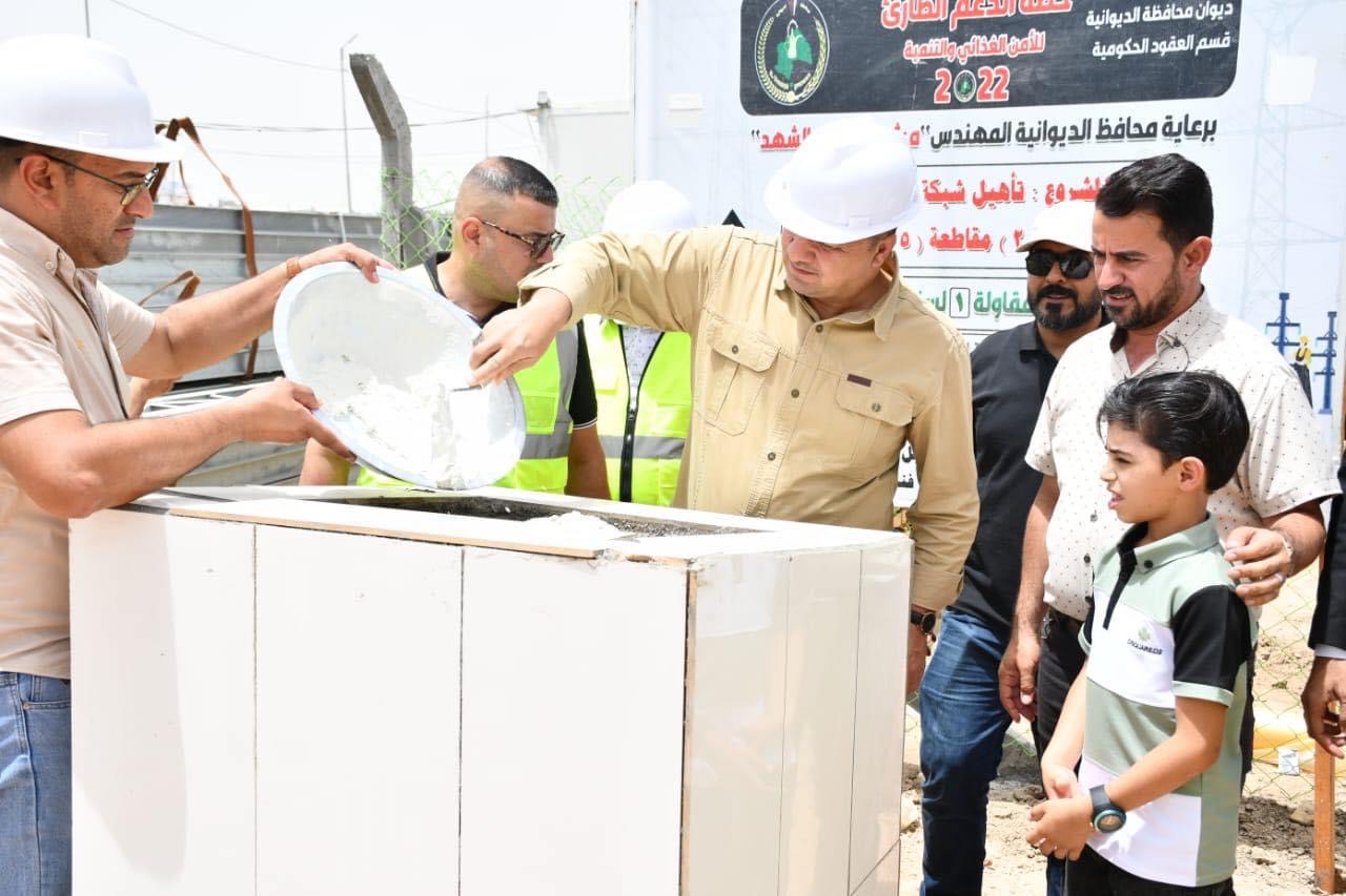 محافظ الديوانية المهندس ميثم عبد الاله الشهد يضع حجر الاساس لمشروع تنفيذ شبكة كهرباء حي الشهداء للقطعة المرقمة 2 مقاطعة 5 ام عباسيات ضمن خطة الدعم الطاريء للامن الغذائي والتنمية مناقصة 1 لسنة 2022