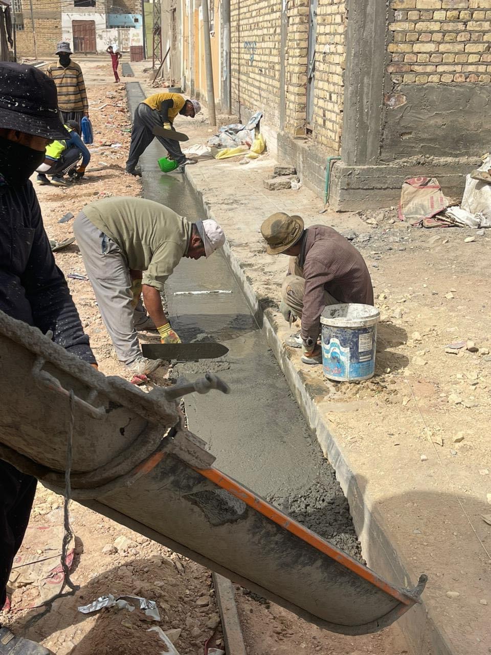 حكومة الخدمات تواصل وبهمة الأبطال أعمال الصب ( الجزء الأول) لشوارع حي الكرامة في قضاء الحمزة الشرقي بعد أكتمال أعمال البنى التحتية فيه وبنسب إنجاز عالية