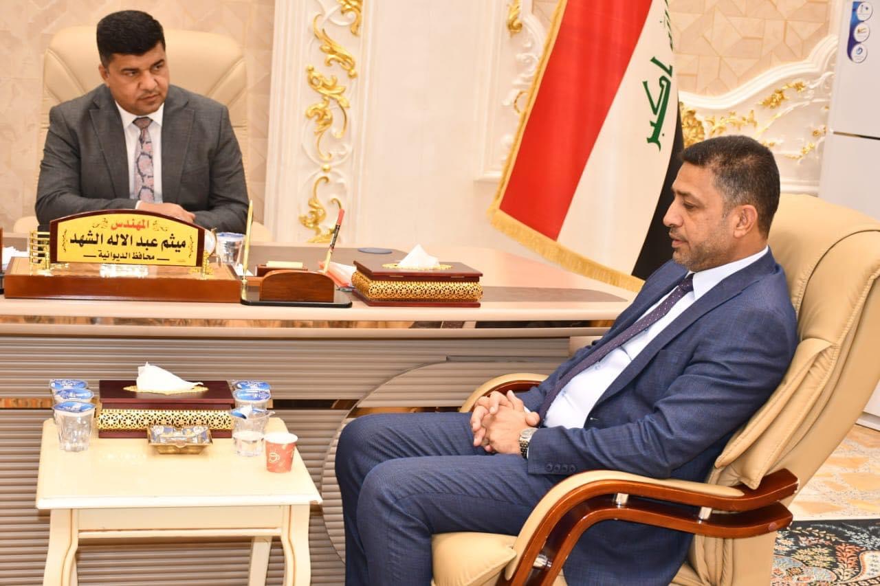 محافظ الديوانية المهندس ميثم عبد الإله الشهد يستقبل مدير عام دائرة البستنة في وزارة الزراعة الدكتور هادي هاشم الموسوي ويبحث معه سبل التعاون لتفعيل جانب التشجير في المدينة