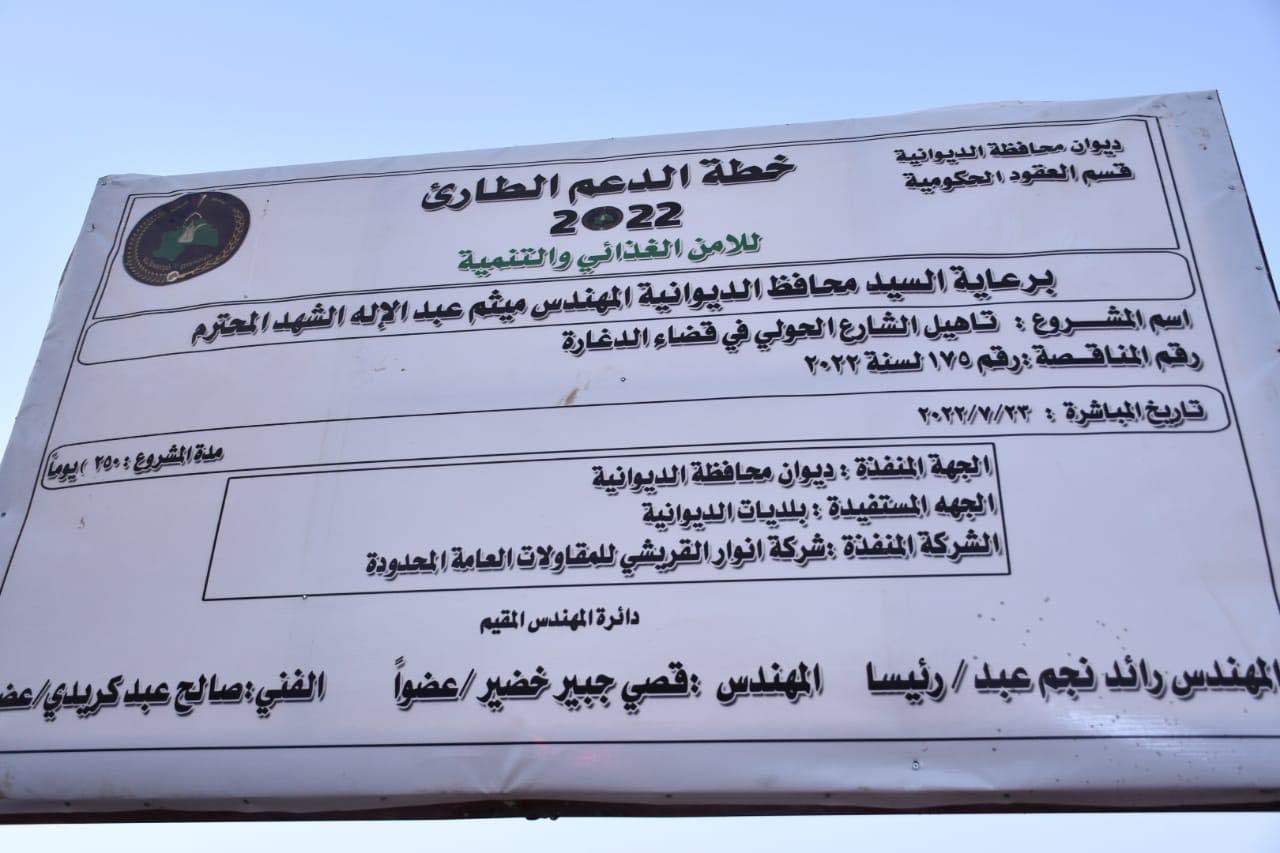 محافظ الديوانية المهندس ميثم عبد الإله الشهد يضع حجر الاساس لمشروع تاهيل الطريق الحولي في قضاء الدغارة ضمن مشاريع الامن الغذائي لعام ٢٠٢٢