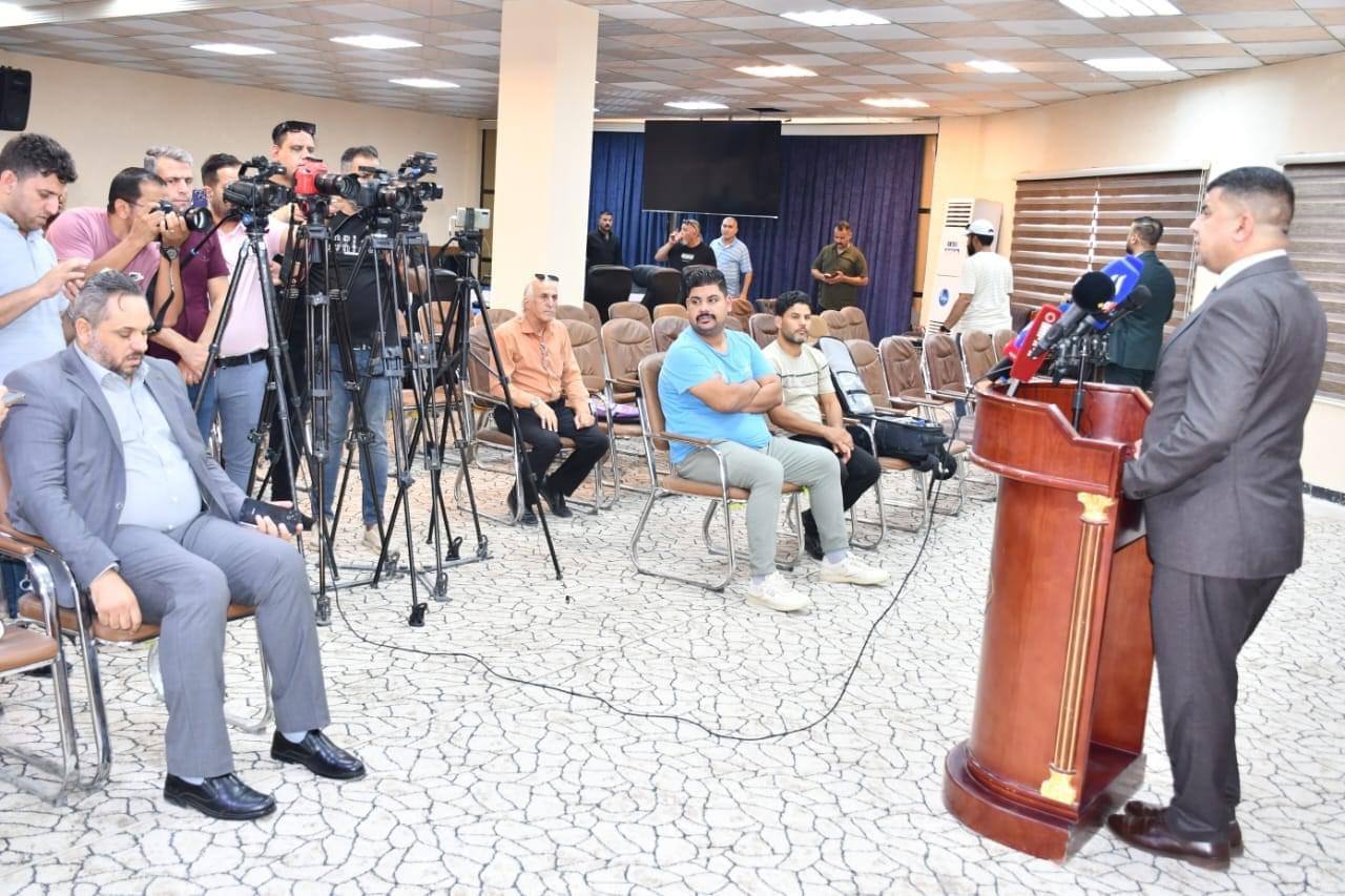 محافظ الديوانية المهندس “ميثم عبد الإله الشهد” خلال مؤتمر صحفي: