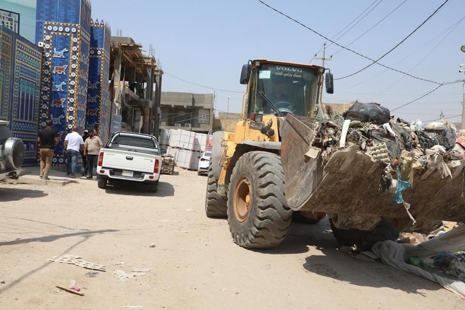 ☑️ قيام القطاع البلدي السادس برفع النفايات وردم المستنقعات وغسل الشوارع والأرصفة في شوارع مكتب الحياة والنسيج والاسكان الرئيسي وفي منطقة حي الامير.