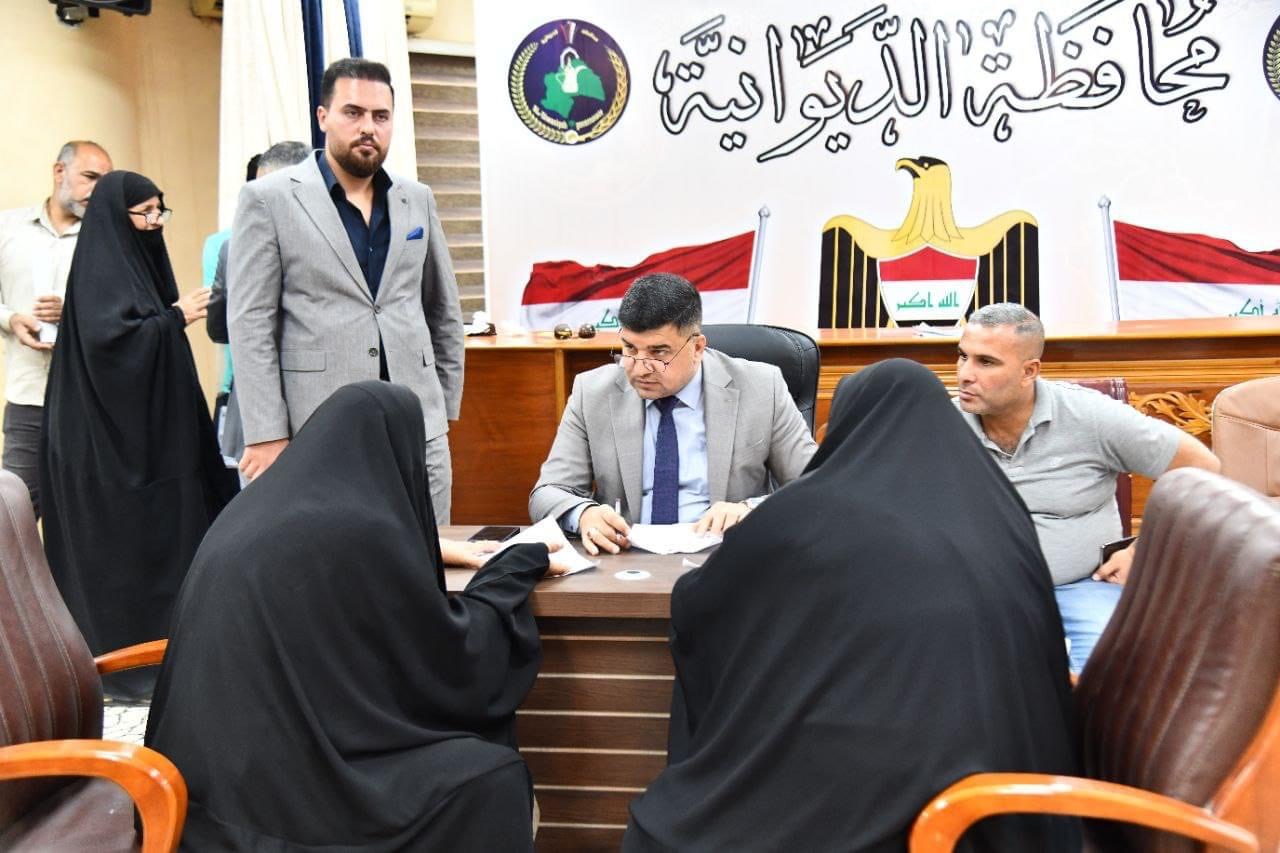 ضمن برنامجه الاسبوعي ، محافظ الديوانية يلتقي عدداً من المواطنين في ديوان المحافظة للاستماع الى مشاكلهم، ويوجه الدوائر والمؤسسات الخدمية والحكومية بتذليل العقبات التي تواجههم