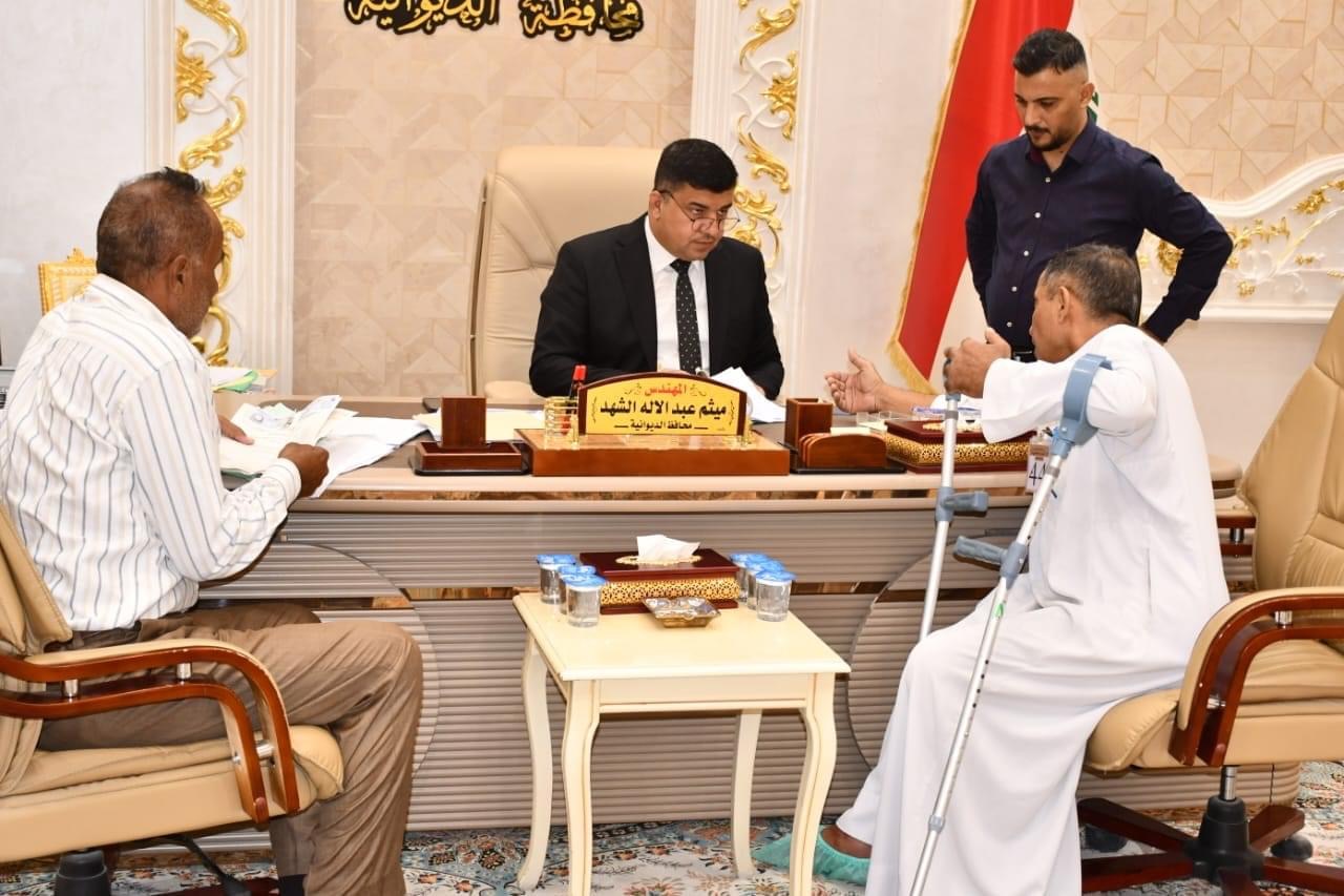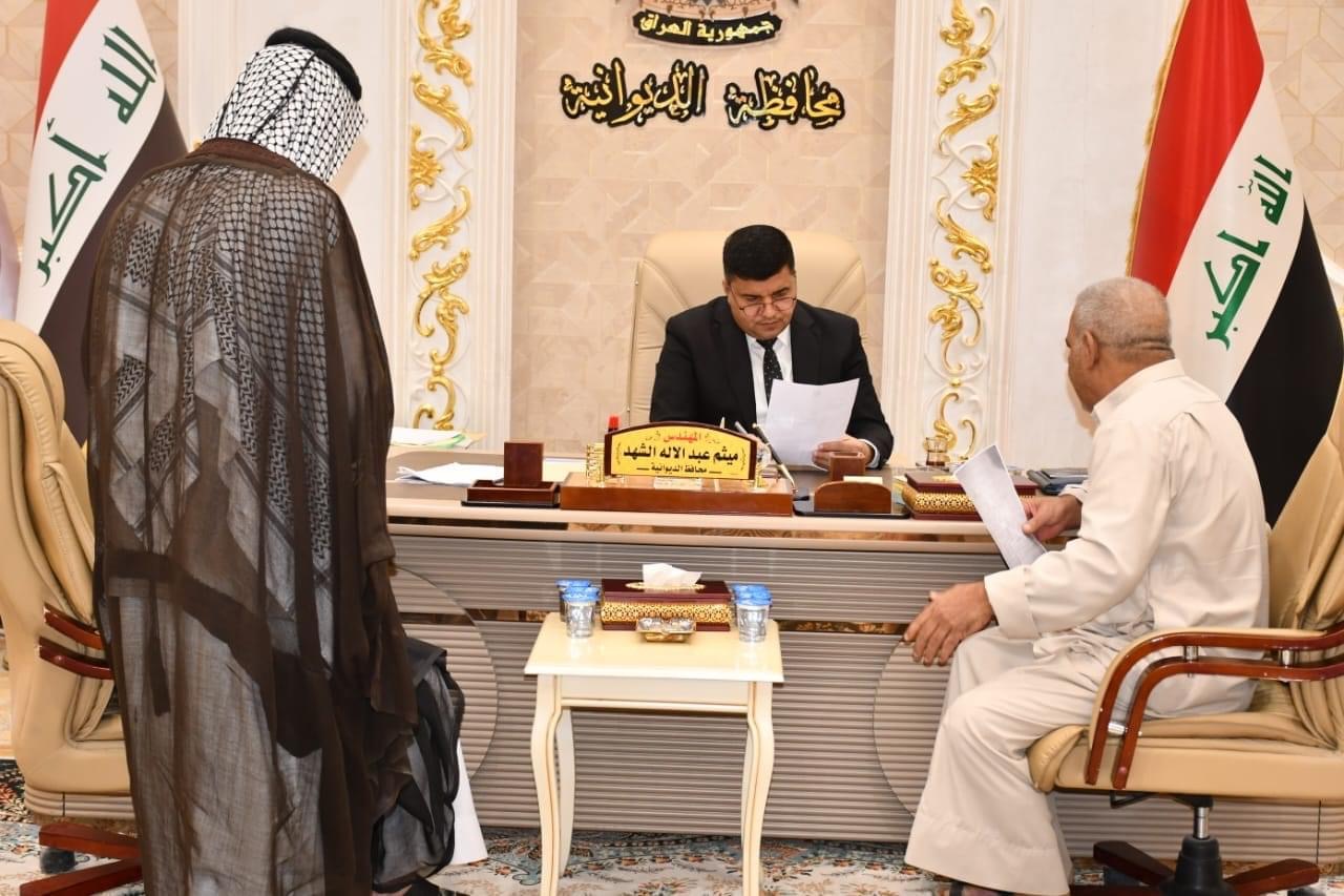 ضمن برنامجه الاسبوعي ، محافظ الديوانية المهندس “ميثم عبد الإله الشهد” يلتقي عدداً من المواطنين، للاستماع الى مشاكلهم، ويوجه الدوائر والمؤسسات الخدمية والحكومية بتذليل العقبات التي تواجههم