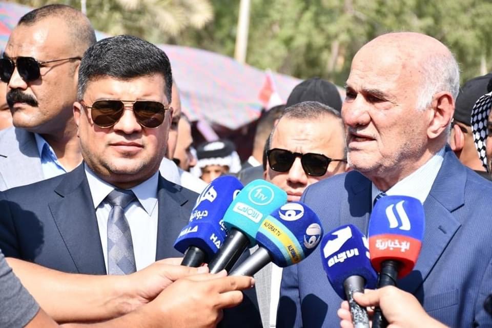 بحضور وزير الموارد المائية “عون ذياب” وعضو مجلس النواب العراقي “نور نافع الجليحاوي” وعدد من الشخصيات الرسمية ، محافظ الديوانية المهندس “ميثم عبد الإله الشهد” يفتتح مشروع كورنيش عفك