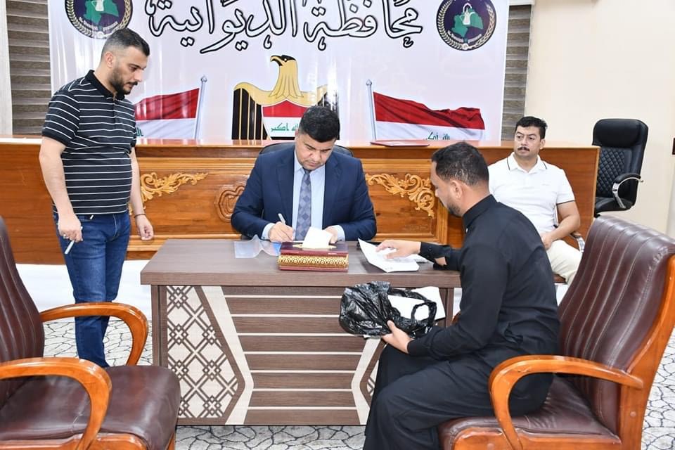 ضمن برنامجه الأسبوعي ، محافظ الديوانية المهندس “ميثم عبد الإله الشهد” يلتقي عددا من المواطنين، في ديوان المحافظة ويستمع لمشاكلهم ويوجه بتذليل الصعوبات وايجاد الحلول لها