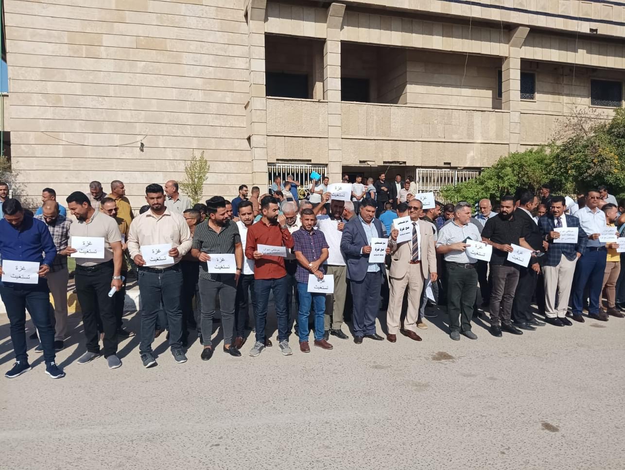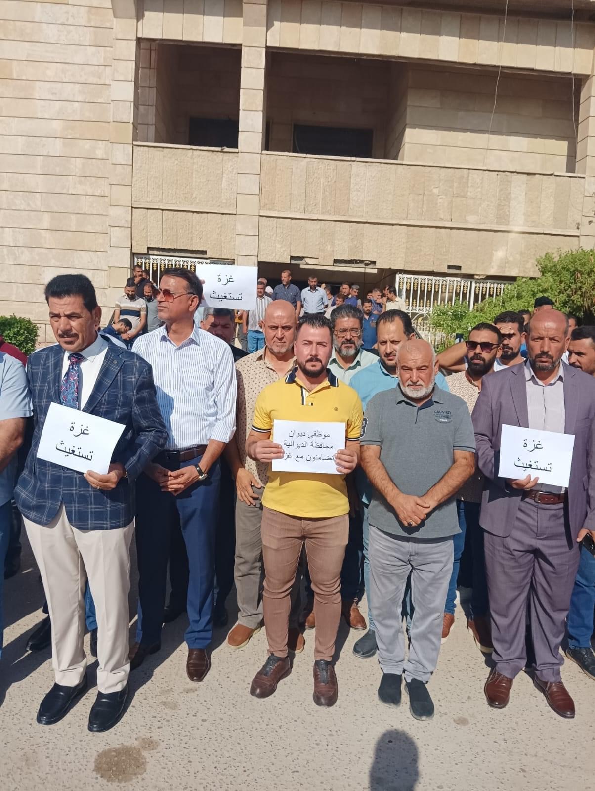 بتوجيه من دولة رئيس الوزراء المهندس محمد شياع السوادني موظفو ديوان المحافظة والمؤسسات والدوائر الحكومية وطلبة الجامعات والمدارس والمنتسبين في الأجهزة الأمنية تنظيم وقفة احتجاجية ضد المجزرة التي ارتكبها الكيان الصهيوني ضد أهلنا وشعبنا في مستشفى المعمداني بقطاع غزة