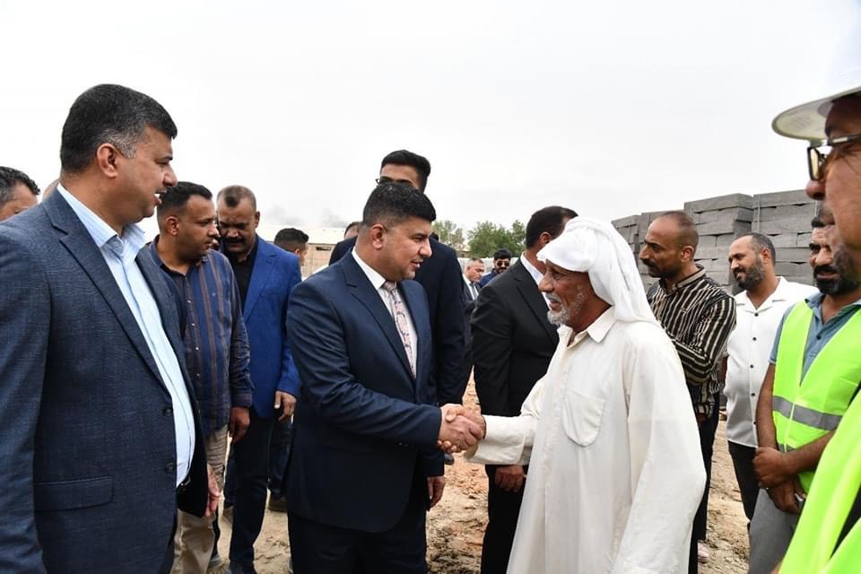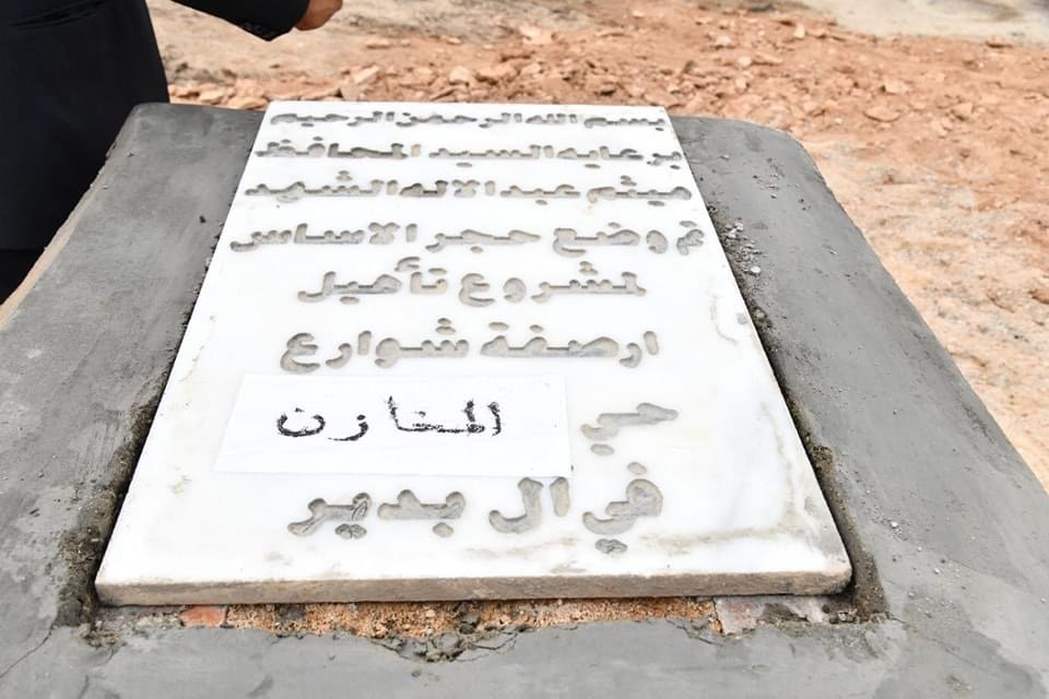 محافظ الديوانية المهندس ميثم “عبد الإله الشهد” يضع حجر الاساس لمشروع تأهيل حي المخازن في قضاء ال بدير