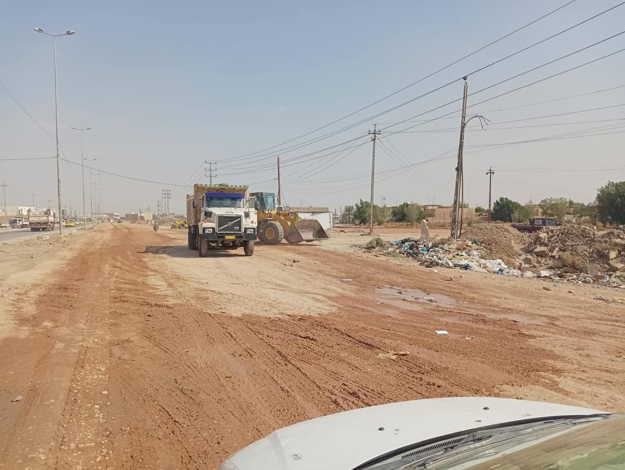 🔻 الشهد: الأعمال تضمنت قلع الطبقة المتضررة من الشارع وفرشها بالجلمود والحصى الخابط (السبيس) تمهيدا لصبها واكساءها.