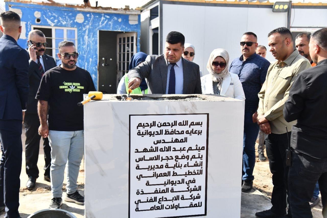 محافظ الديوانية المهندس “ميثم عبد الإله الشهد” يضع حجر الاساس لمشروع بناية التخطيط العمراني في مركز المحافظة ضمن خطة الدعم الطارئ للأمن الغذائي والتنمية مناقصة رقم 206 لسنة 2022 إلى شركة الابداع الفني للمقاولات العامة