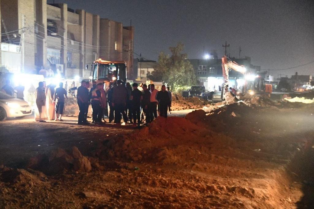 خلال جولة ميدانية في ساعات متأخرة من الليل ، محافظ الديوانية المهندس “ميثم عبد الإله الشهد” يشرف على أعمال ربط خط مياه الأمطار قرب مدرسة الجواهري بالمبزل الرئيسي في منطقة أم الخيل الثانية