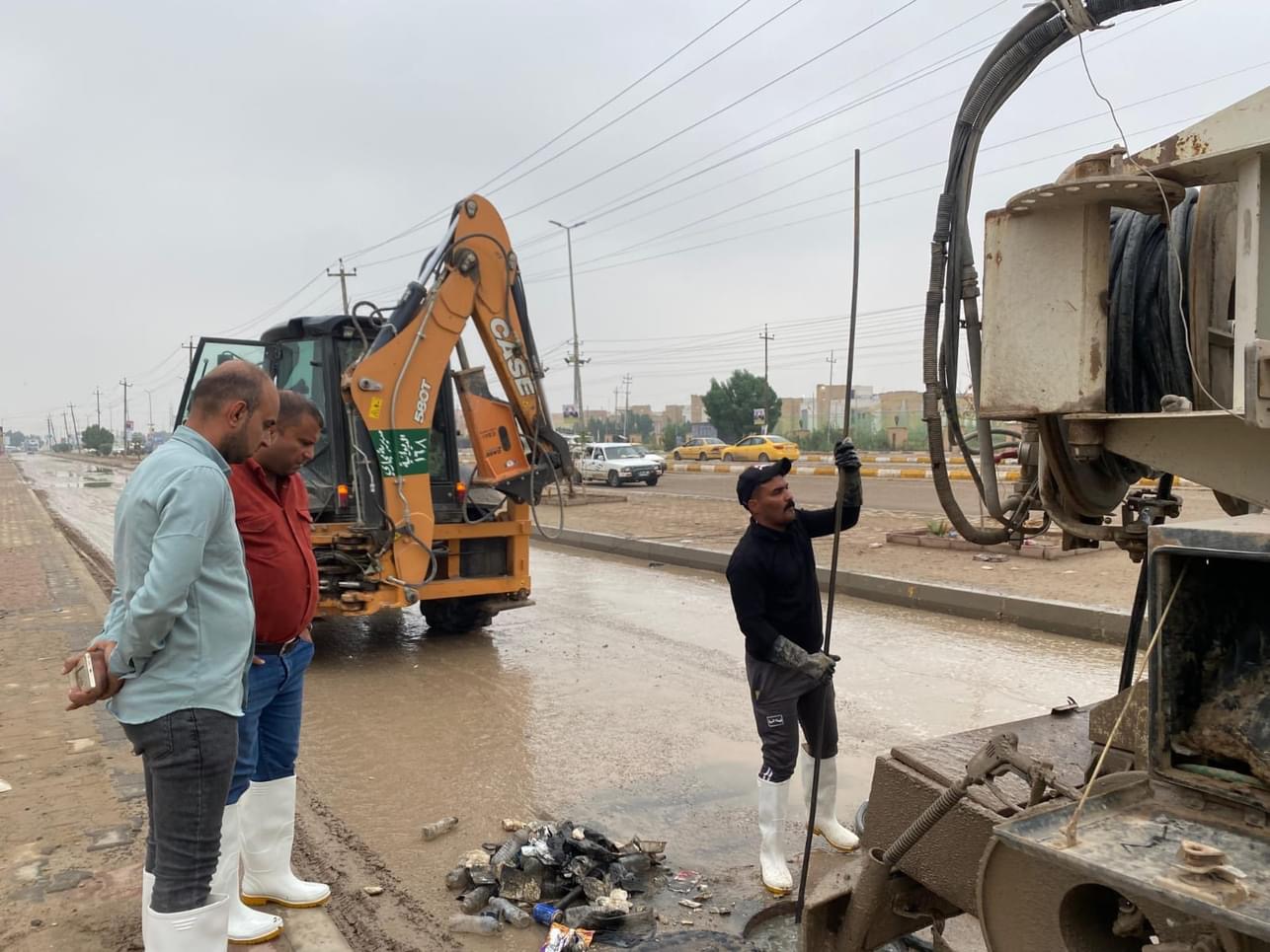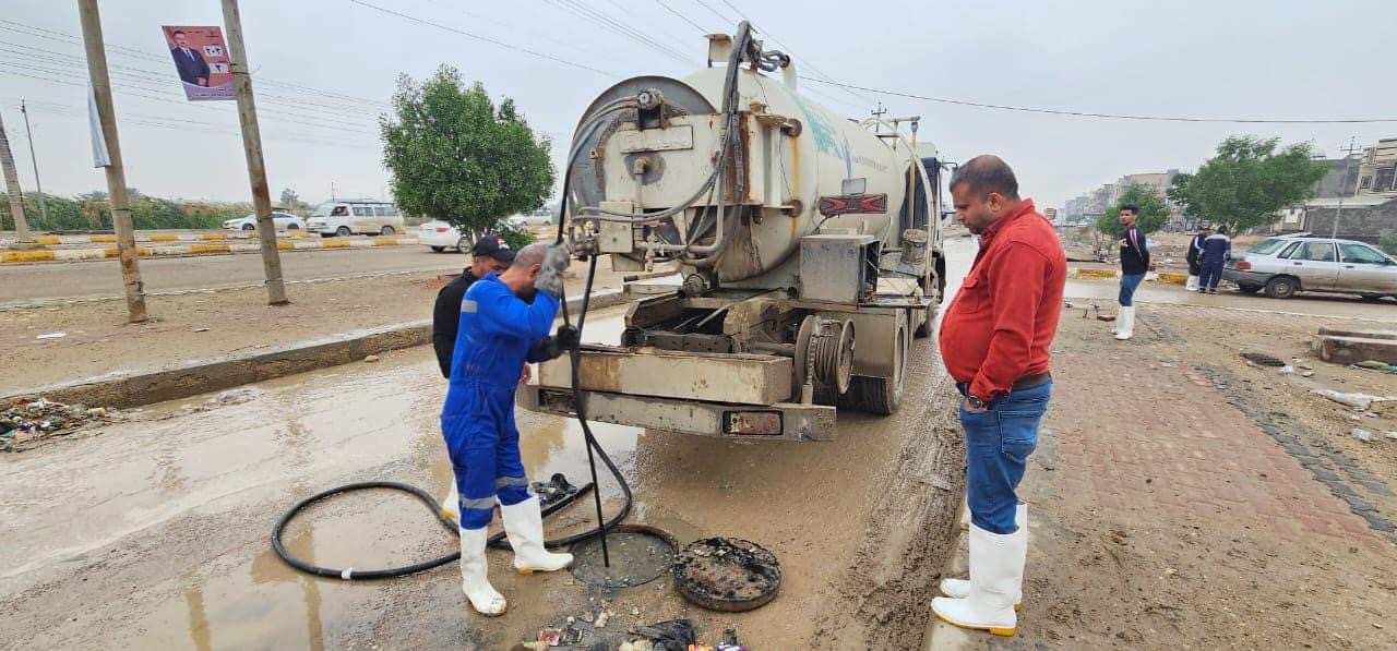 مديرية مجاري الديوانية تستنفر كافة جهودها لسحب مياه الأمطار ومعالجة الانسدادات الحاصلة في الشبكات الرئيسية