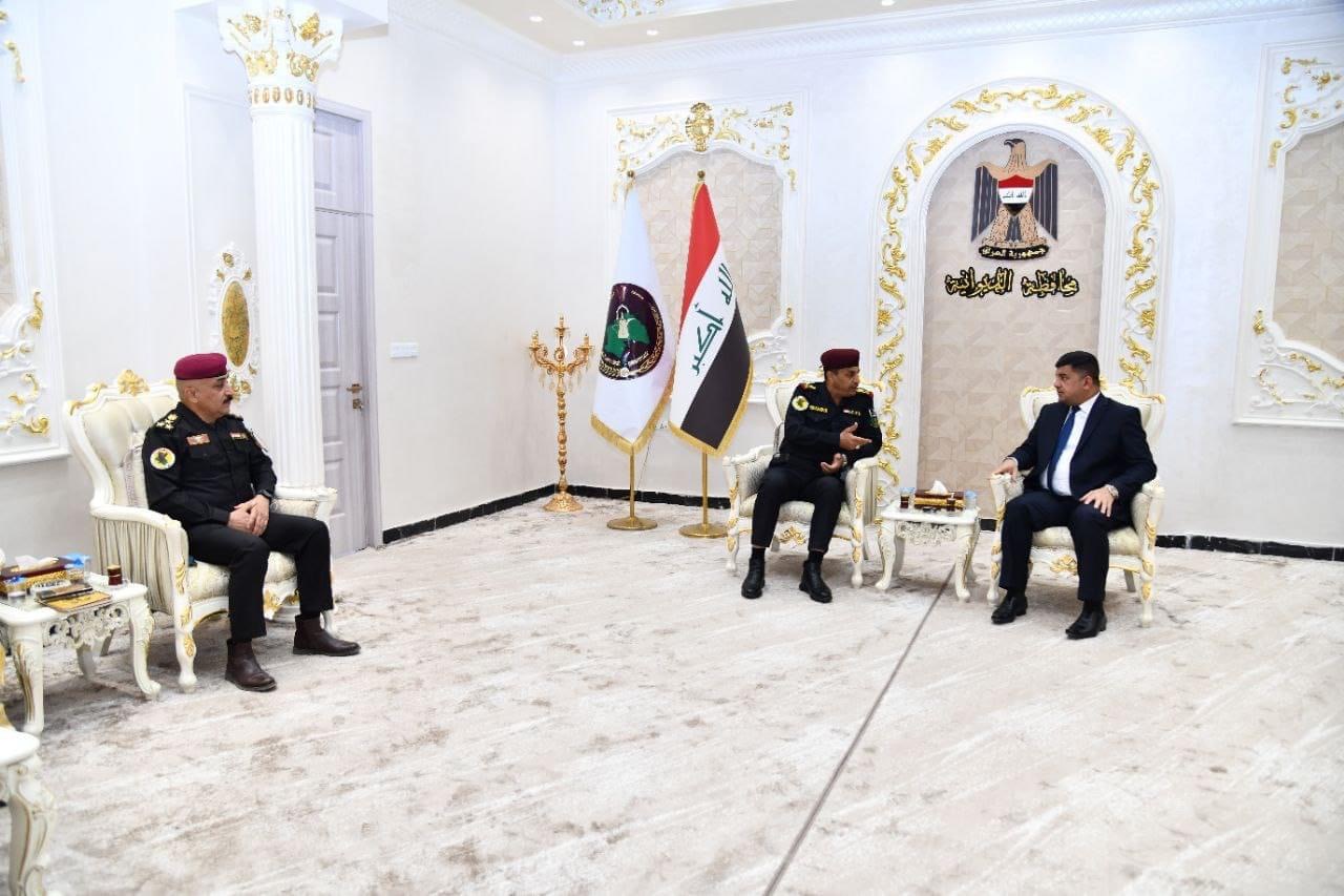 محافظ الديوانية المهندس “ميثم عبد الإله الشهد” يبحث مع قائد العمليات الخاصة الثالثة في جهاز مكافحة الإرهاب اللواء الركن “هادي سرهيد الكناني” آليات تشكيل نقاط دفاعية على الطرق النيسمية وملف مكافحة المخدرات