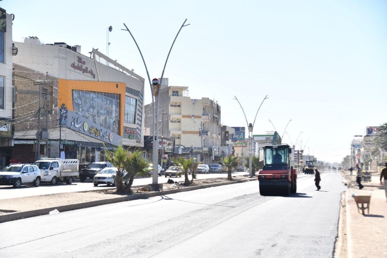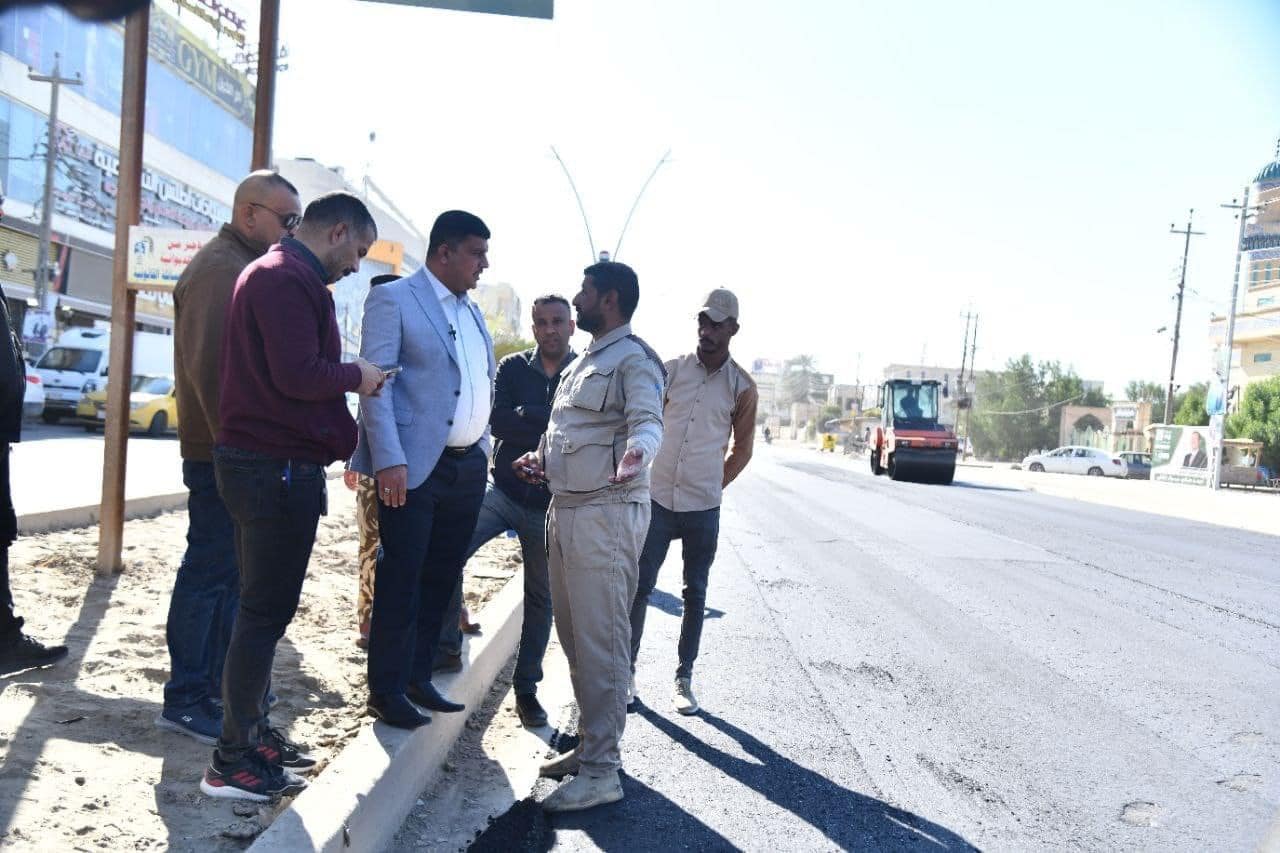 محافظ الديوانية المهندس “ميثم عبد الإله الشهد” يشرف على أعمال إكساء شارع 40 (ام الخيل) المقطع الثاني، الذي وصل للمراحل النهائية من الإنجاز