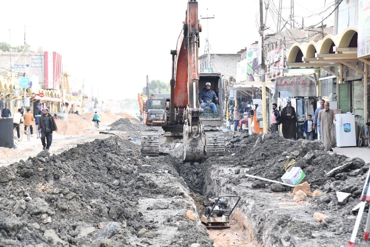 محافظ الديوانية المهندس “ميثم عبد الإله الشهد” يشرف على أعمال تنفيذ خط الناقل في منطقة السوق بقضاء الدغارة
