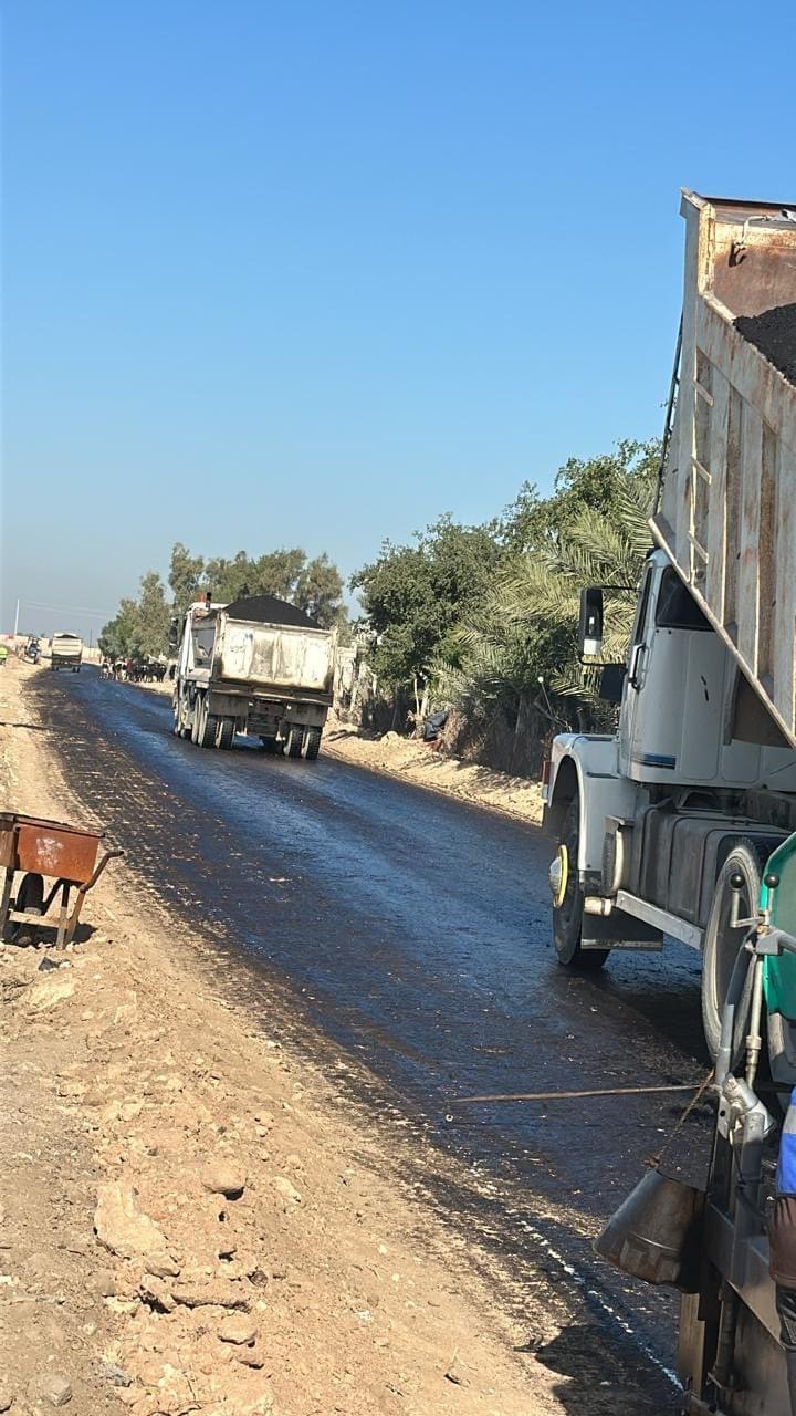 استمرار الأعمال في مشروع إكمال طبقة الأساس القيري لطريق المكينة والگوام في قضاء سومر