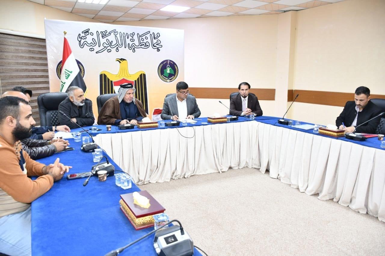 محافظ الديوانية المهندس “ميثم عبد الإله الشهد” يناقش مع ممثلي وزارة الدفاع وهيئة الحشد الشعبي تخصيص قطع الأراضي السكنية للمستحقين من المنتسبين