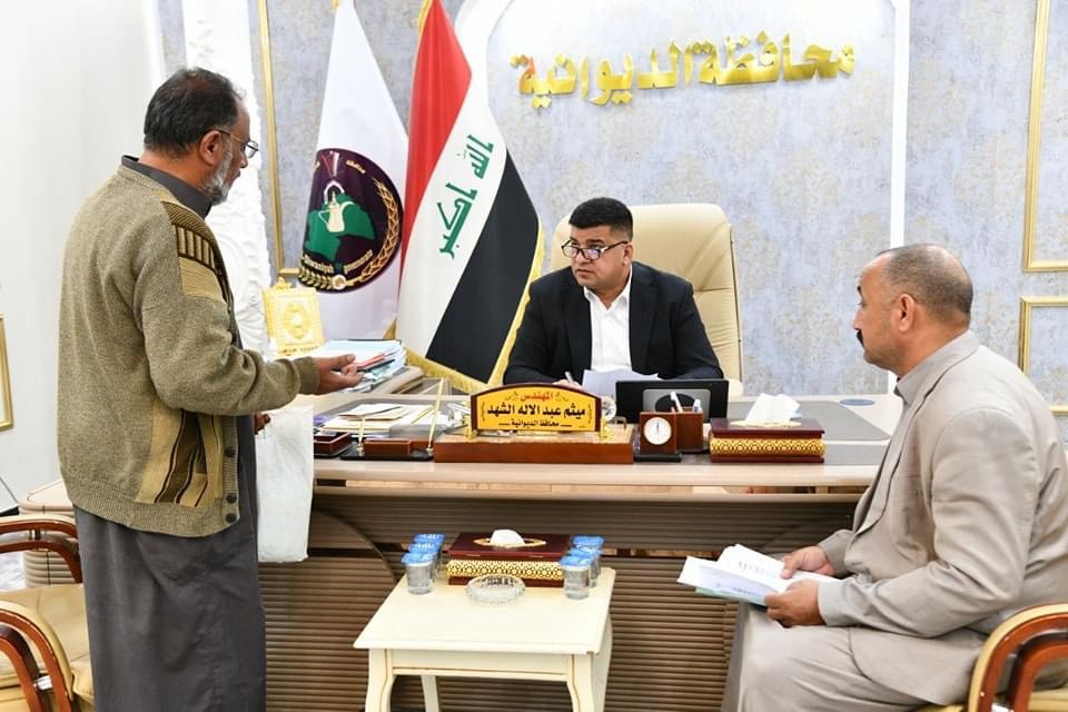 ضمن برنامجه الاسبوعي ، محافظ الديوانية المهندس “ميثم عبد الإله الشهد” يلتقي عدد من المواطنين، في ديوان المحافظة، للاستماع الى مشاكلهم وإيجاد الحلول المناسبة وتذليل العقبات التي تواجههم