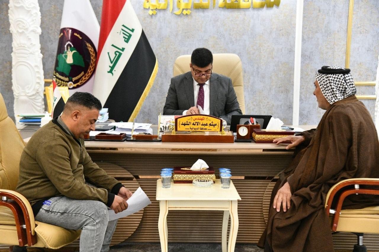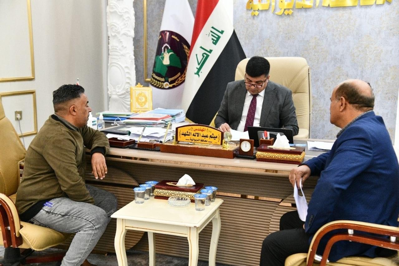 ضمن برنامجه الأسبوعي ، محافظ الديوانية المهندس “ميثم عبد الإله الشهد” يلتقي عددا من المواطنين في ديوان المحافظة، للاستماع الى مشاكلهم ويوجه الجهات المعنية والدوائر الحكومية بتذليل العقبات التي تواجههم