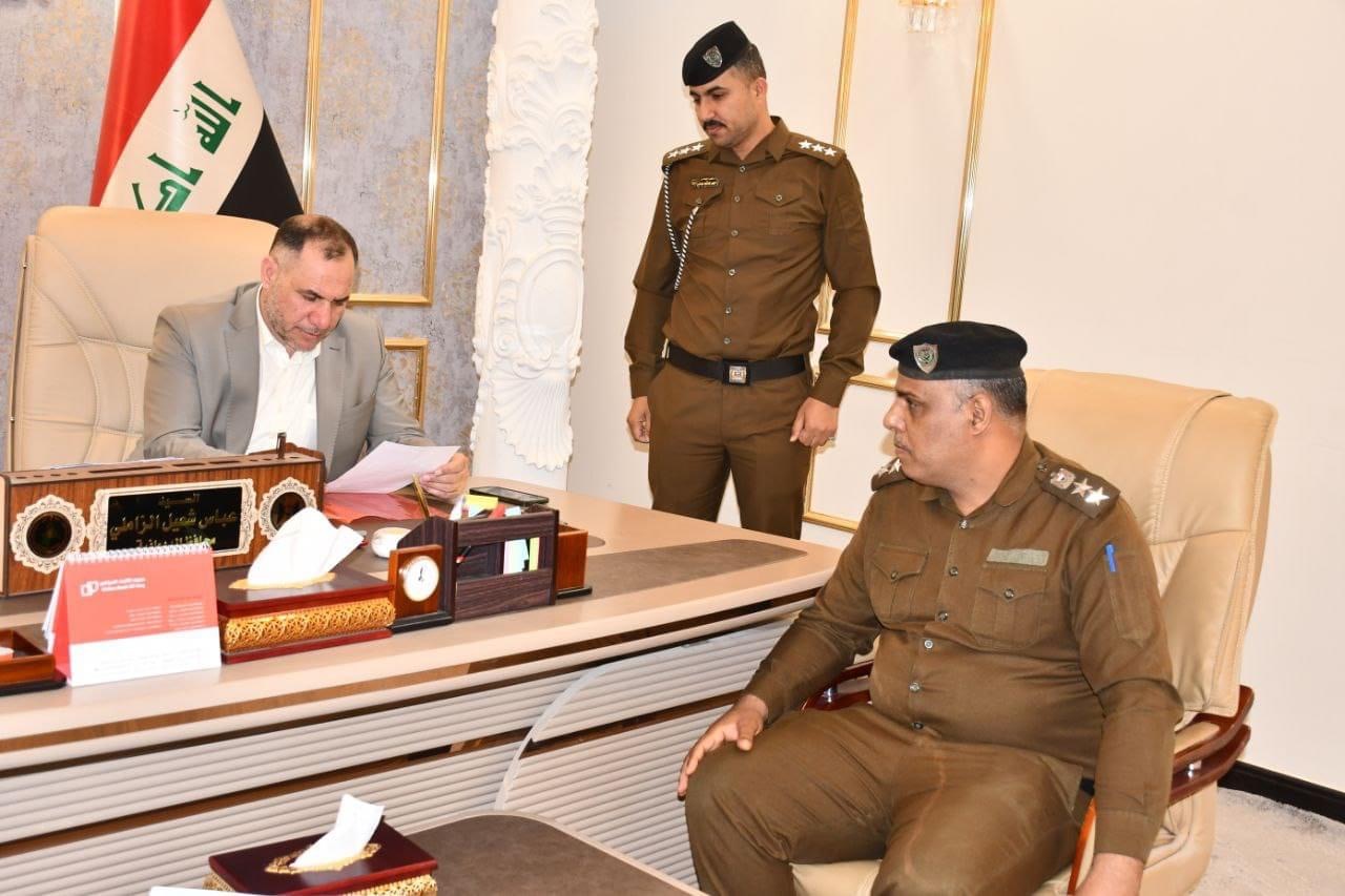 محافظ الديوانية الأستاذ “عباس شعيل الزاملي” يلتقي عدد من ضباط وزارة الداخلية لبحث آلية توزيع قطع الأراضي السكنية