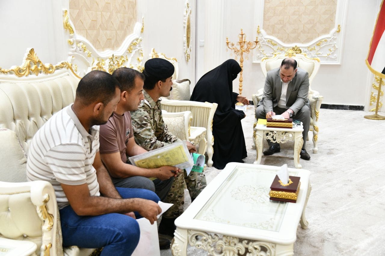 جانب من لقاء محافظ الديوانية الأستاذ “عباس شعيل الزاملي” مع عددا من المواطنين، ضمن برنامجه اليومي