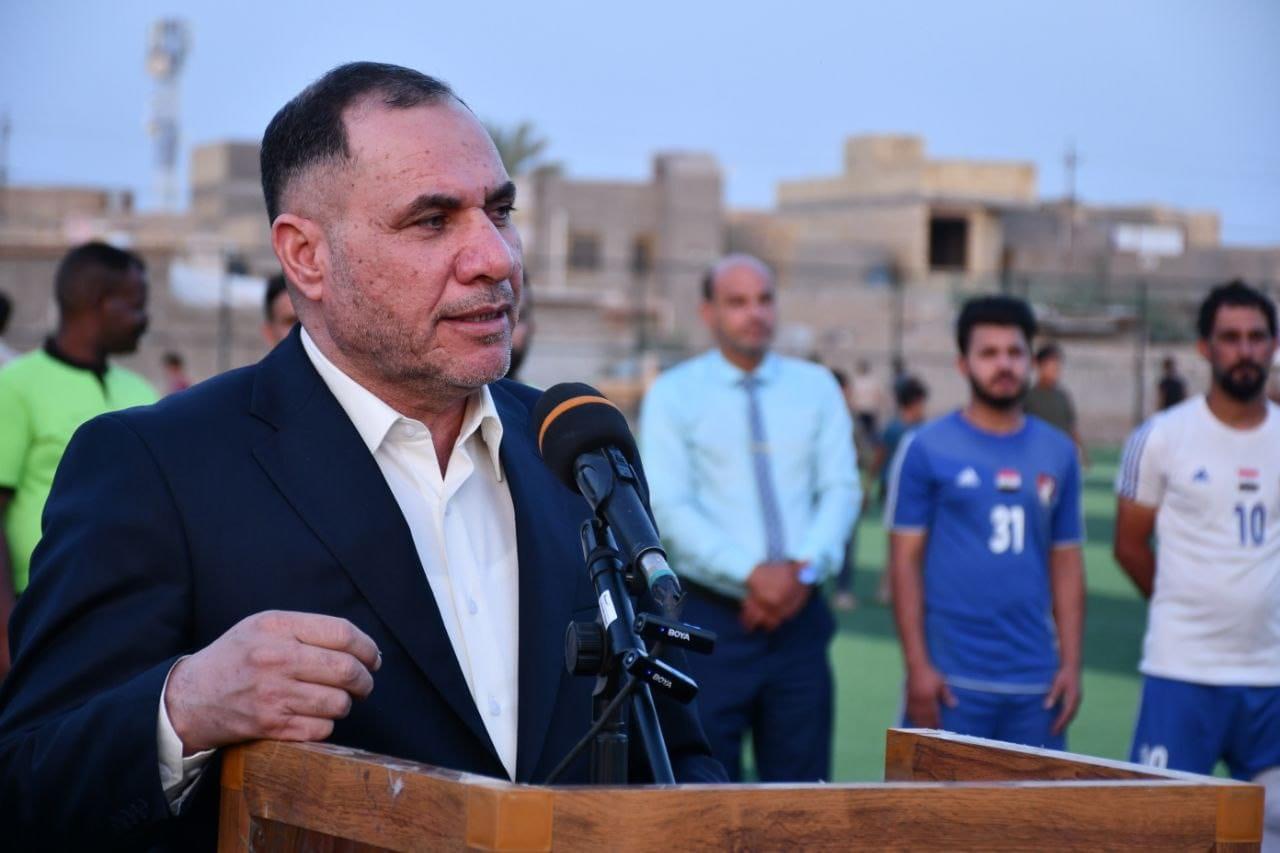 محافظ الديوانية الأستاذ “عباس شعيل الزاملي” يفتتح ملعب الرياضي الراحل “فالح عبد حاچم” في منطقة حي الفرات ويؤكد أن شريحة الشباب هم الركيزة الأساسية لبناء وتطوير المحافظة