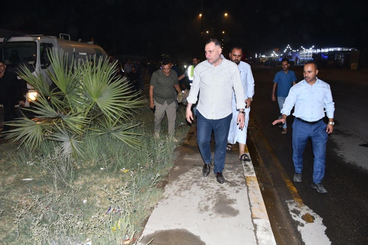 محافظ الديوانية الأستاذ “عباس شعيل الزاملي” يشرف على الحملة الخدمية في شارع المعهد الفني بمركز المحافظة