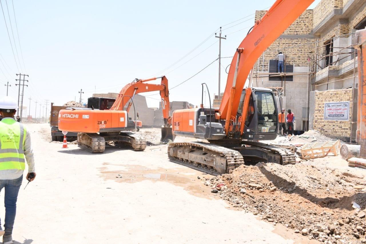 في جولة ميدانية ، محافظ الديوانية الأستاذ “عباس شعيل الزاملي” ووزير الإعمار والإسكان والبلديات العامة “بنكين ريكاني” يتابعان سير أعمال تأهيل حي الجامعة بمركز المحافظة