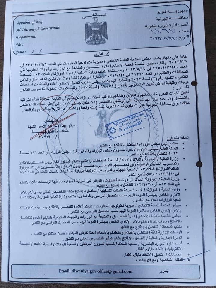 محافظ الديوانية يناقش مع وفد وزارة الموارد المائية إيصال المياه لمجمعات الاسالة