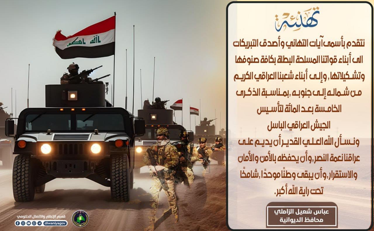 تهنئة..بمناسبة الذكرى الخامسة بعد المائة لتأسيس الجيش العراقي الباسل