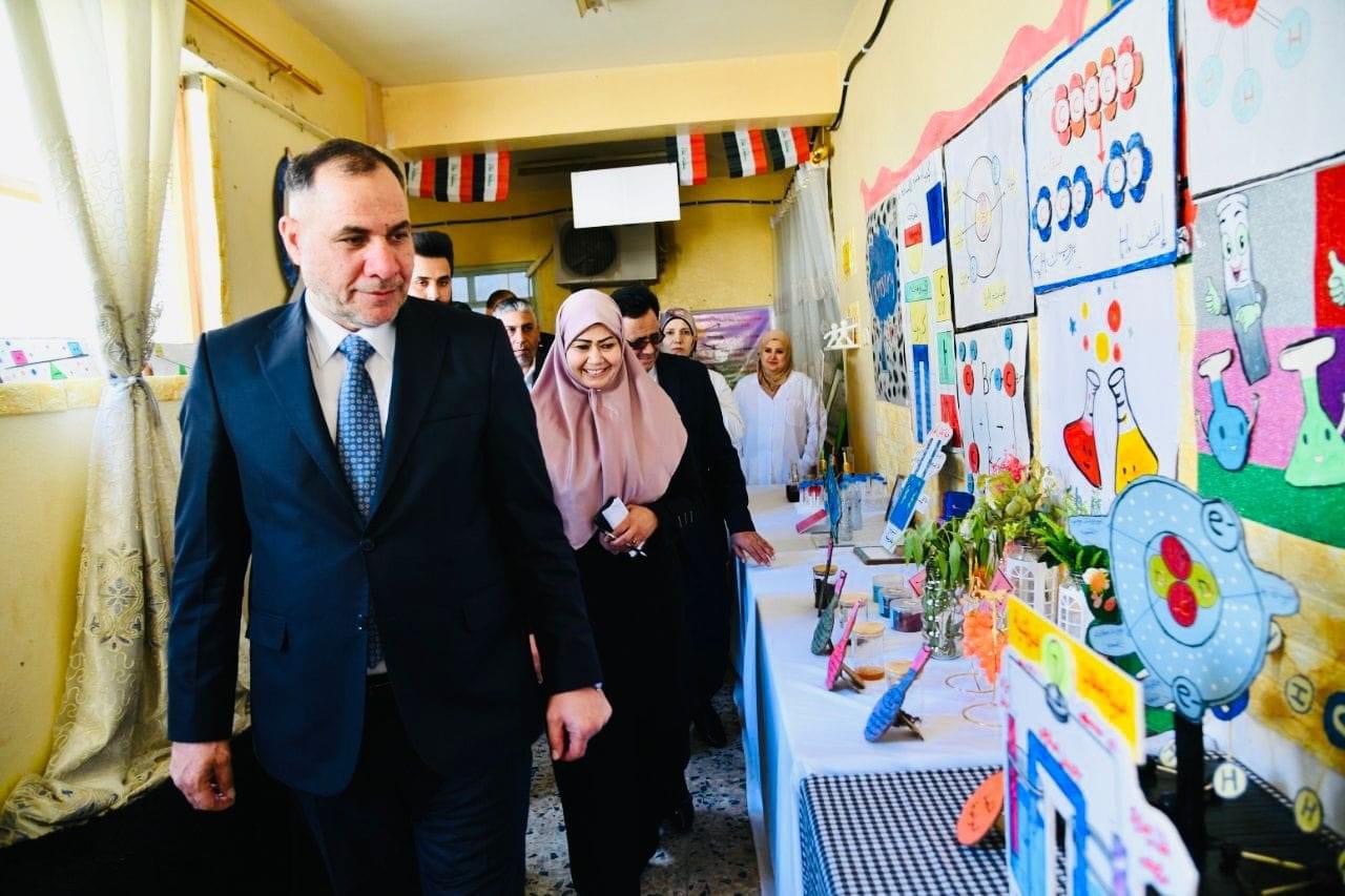 محافظ الديوانية الأستاذ “عباس شعيل الزاملي” يفتتح معرض الوسائل التعليمية في متوسطة فاطمة بنت أسد للبنات