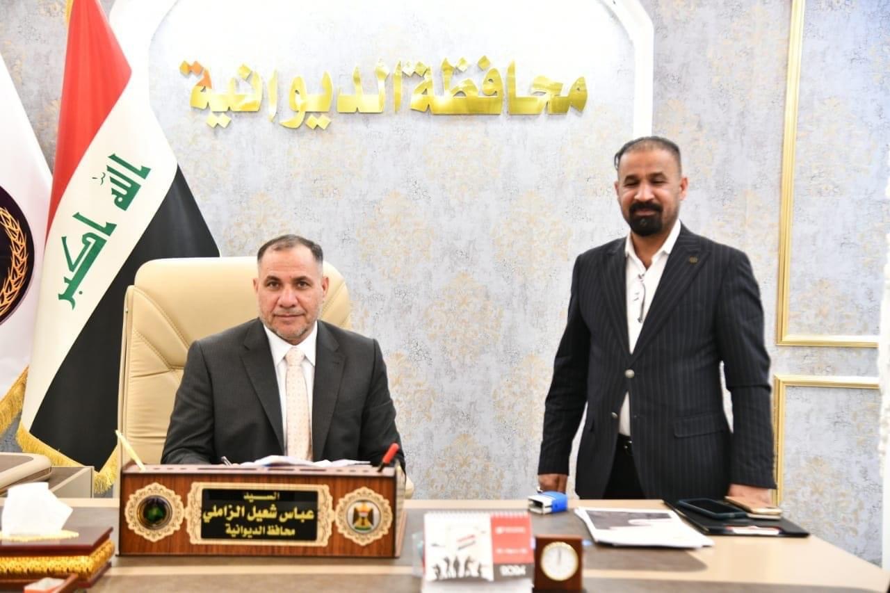 محافظ الديوانية الأستاذ “عباس شعيل الزاملي” يستقبل مدير عام الشركة العامة لتوزيع كهرباء الفرات الأوسط بحضور عضو البرلمان العراقي النائب حيدر شيخان